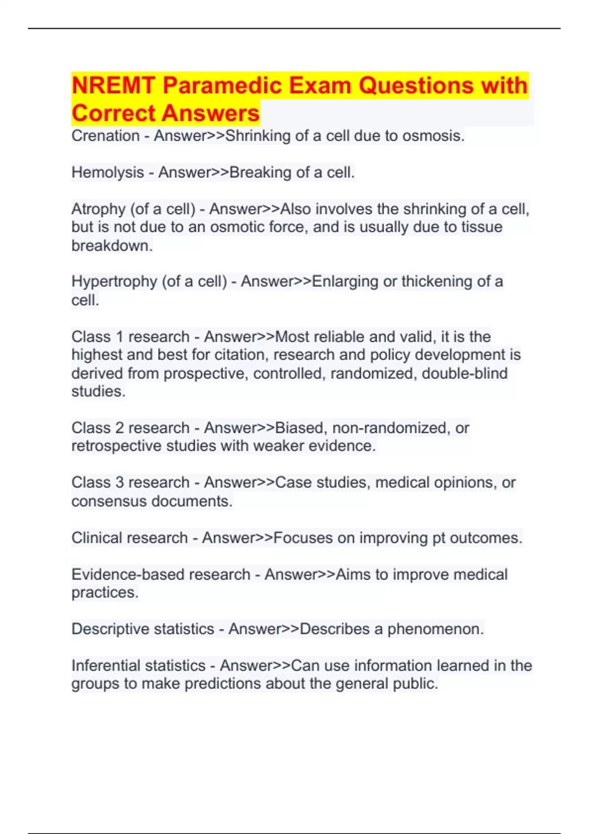 nremt paramedic exam questions with correct answer