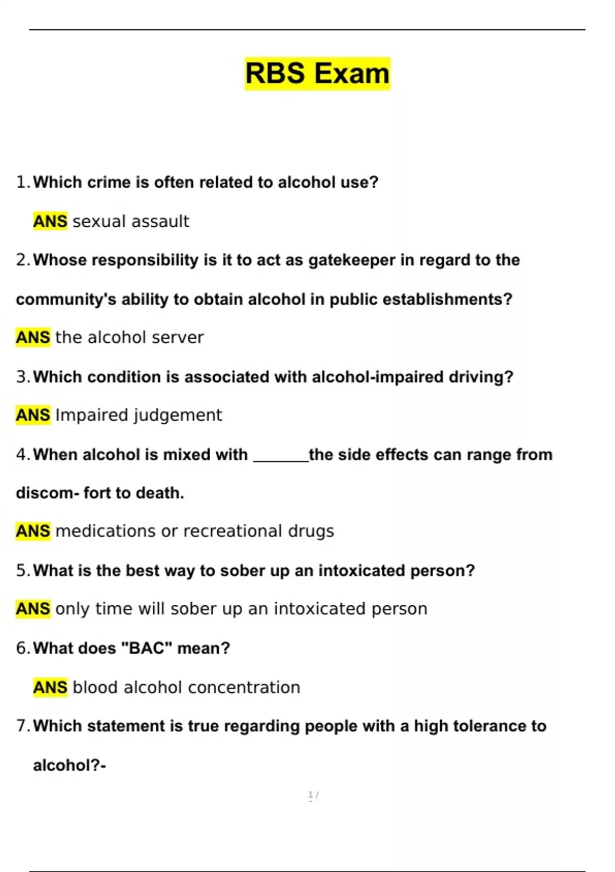 RBS Exam 2024 Latest Questions with 100% Correct Answers | Verified | Latest Update