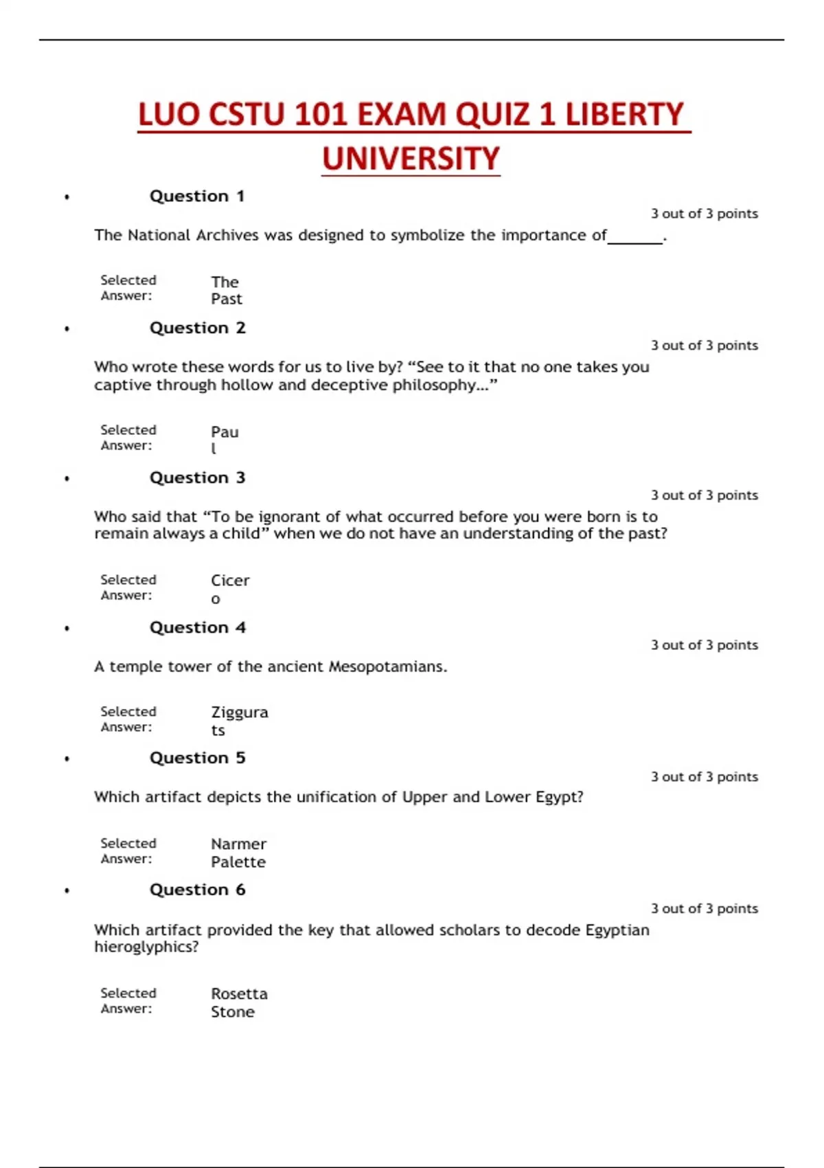 LUO CSTU 101 EXAM QUIZ 1 LIBERTY UNIVERSITY