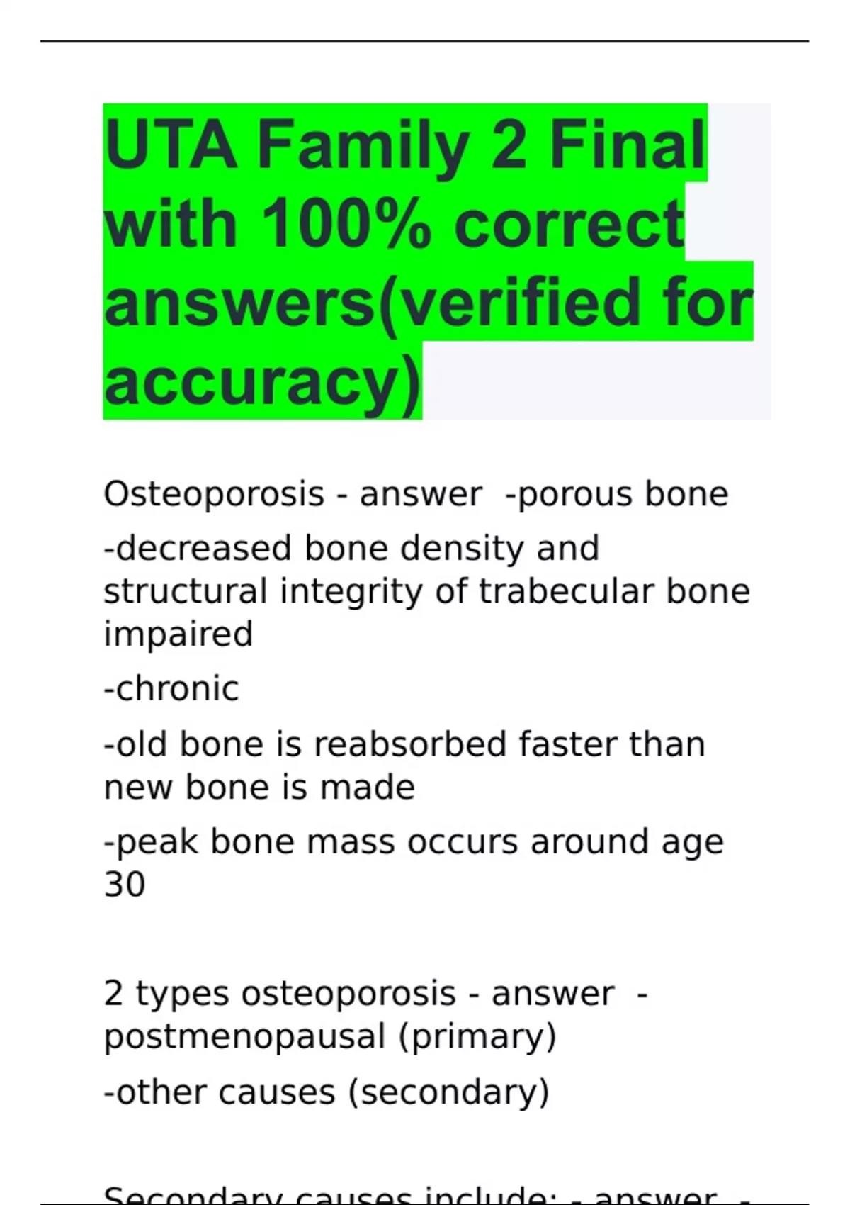 UTA Family 2 Final with 100% correct answers(verified for accuracy)