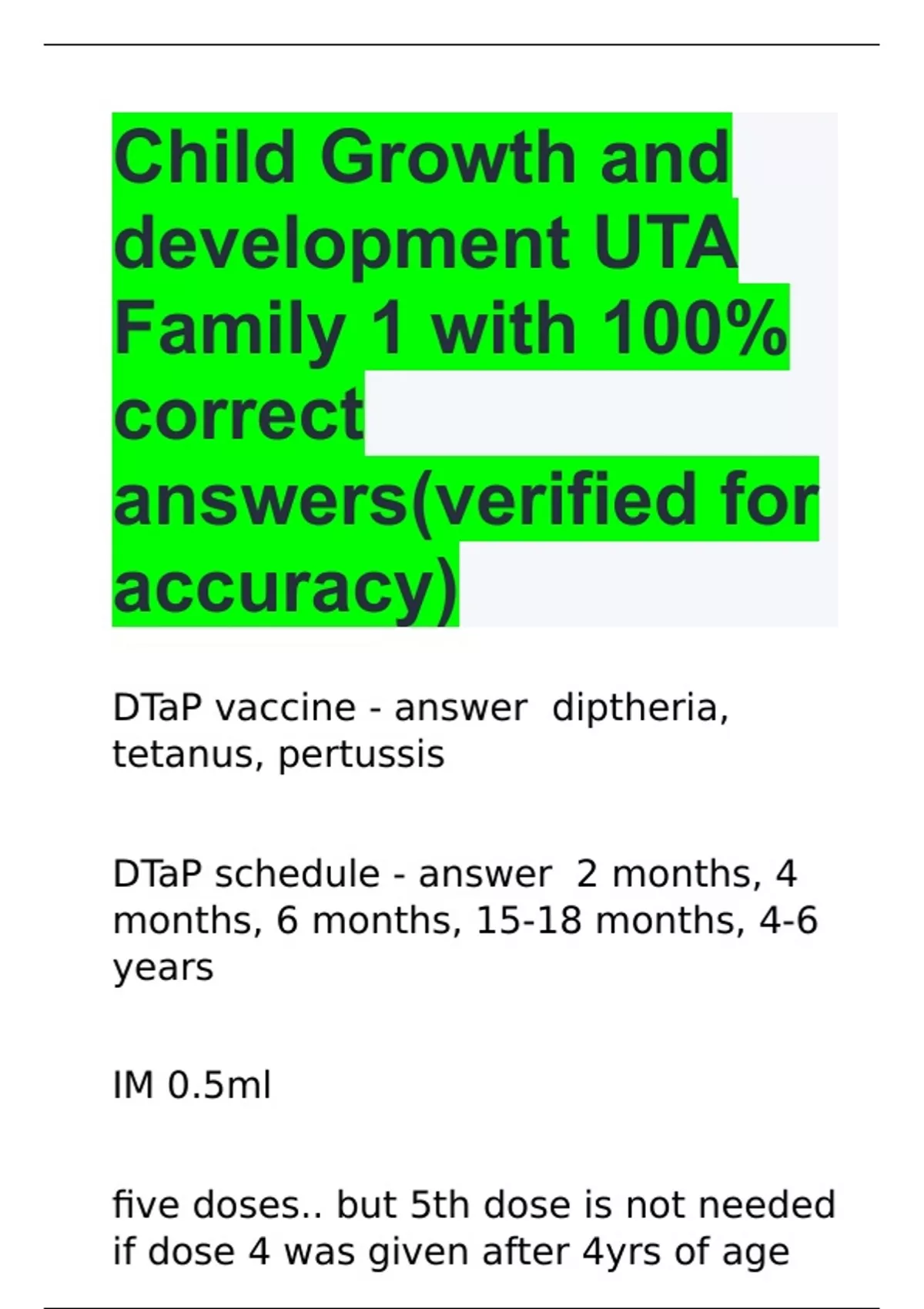 Child Growth and development UTA Family 1 with 100% correct answers(verified for accuracy)
