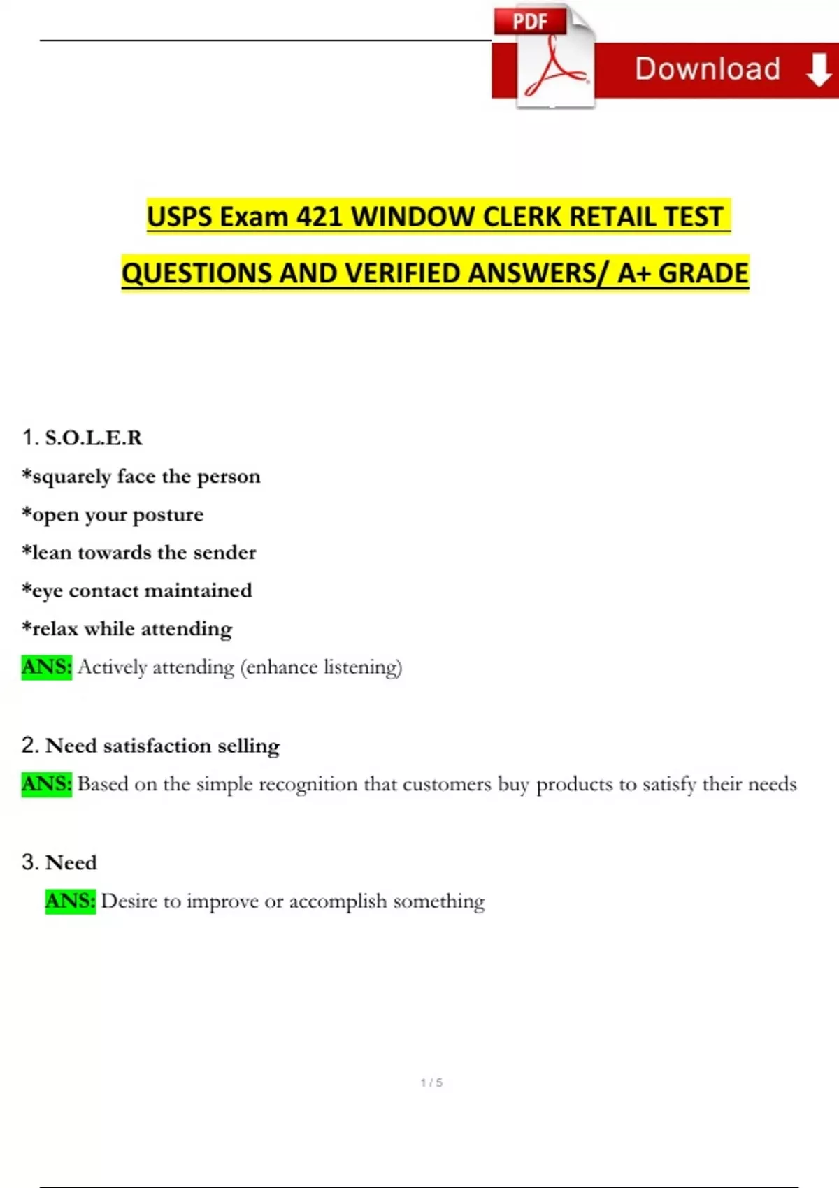 2024 USPS 421 Window Clerk Retail Exam Expected Questions and Answers (2024 / 2025) Verified Newest Version