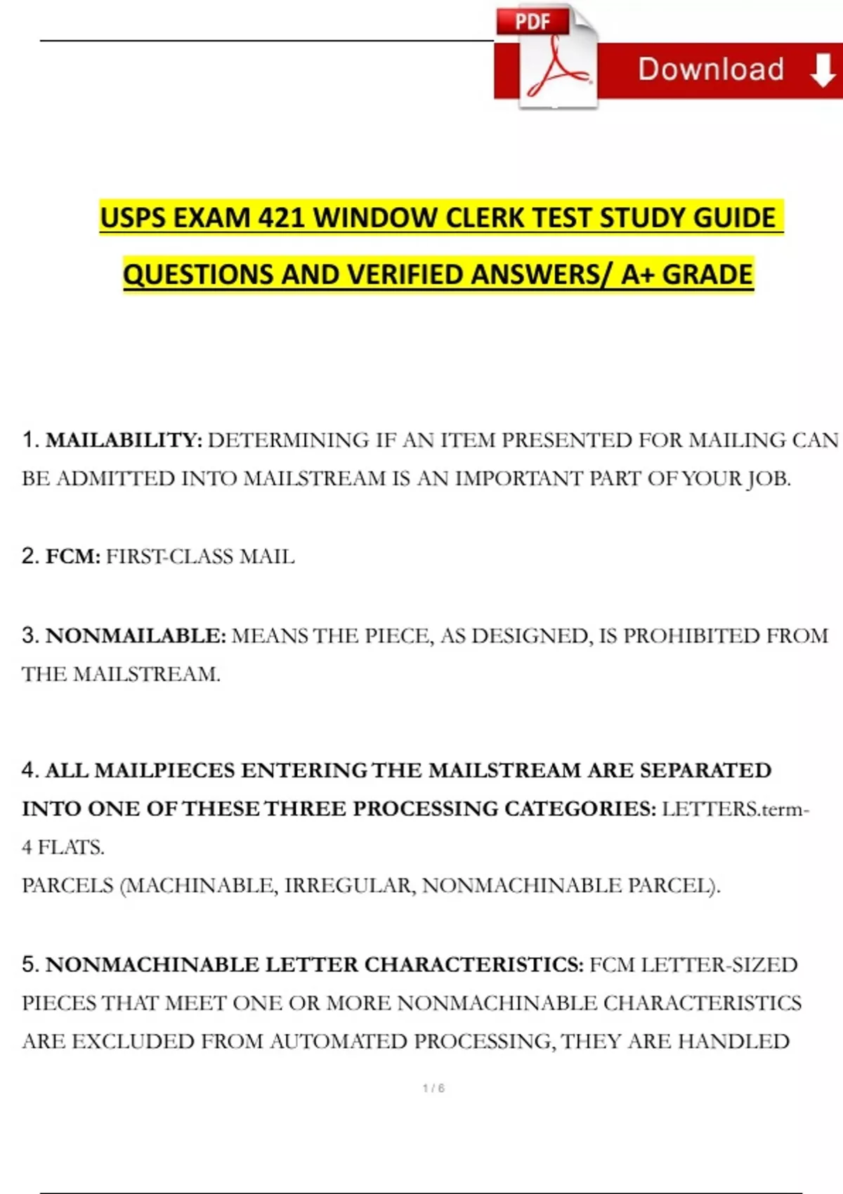 USPS 421 Window Clerk Exam Study Guide Questions and Answers Expected (2024 / 2025) Verified Newest Version