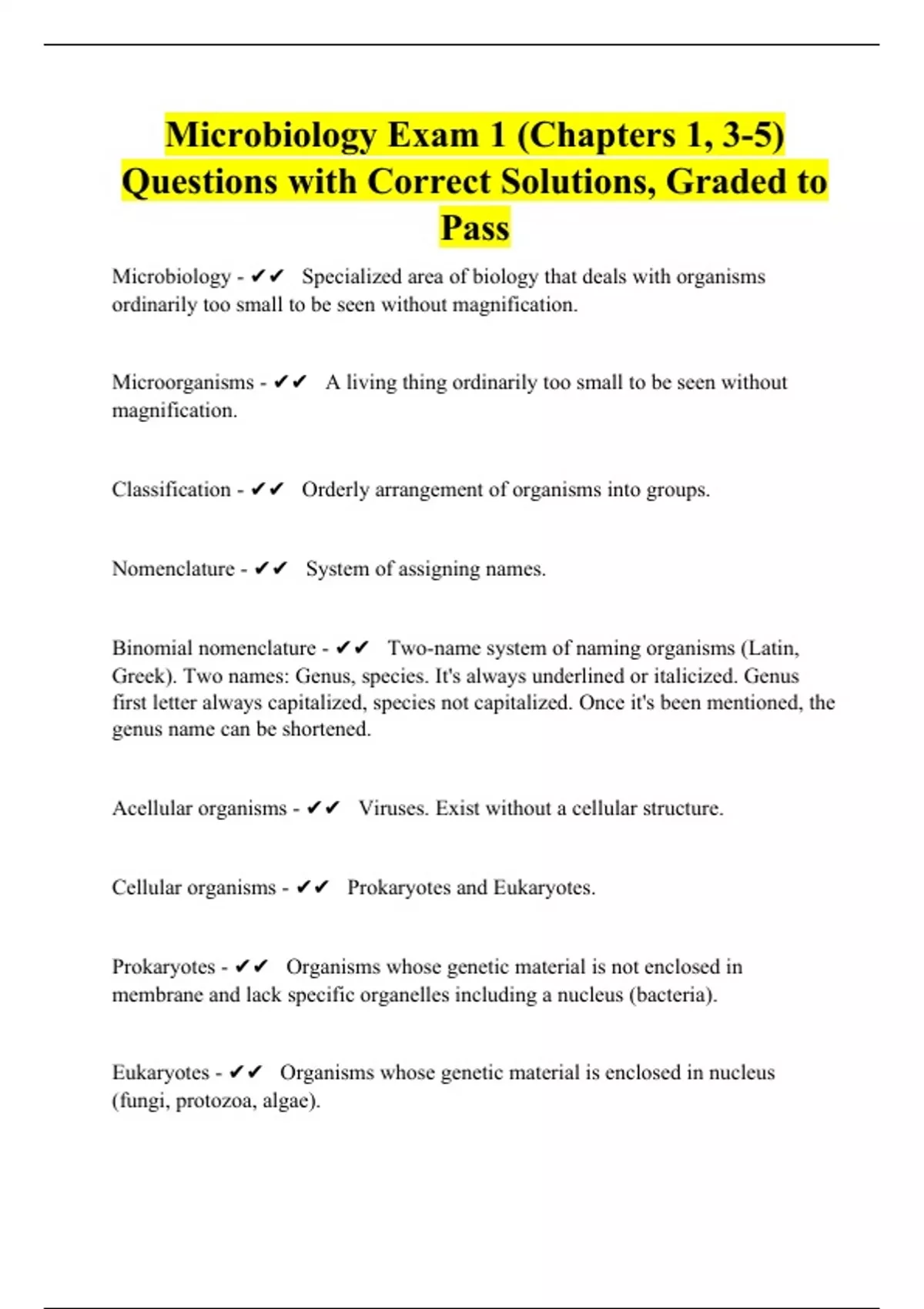 Microbiology Exam 1 (Chapters 1, 3-5) Questions with Correct Solutions, Graded to Pass