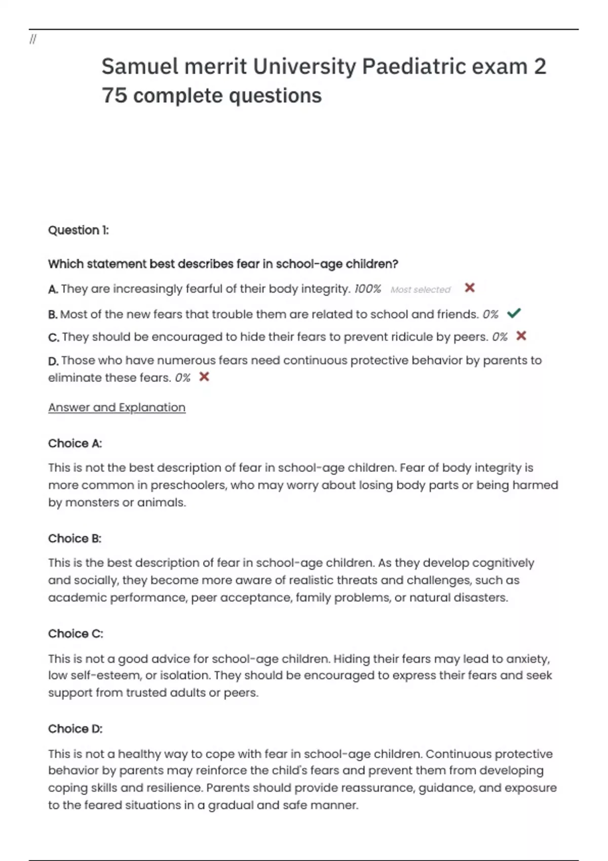 Samuel merrit University Paediatric exam 2 75 complete Questions and Verified Answers with Rationales