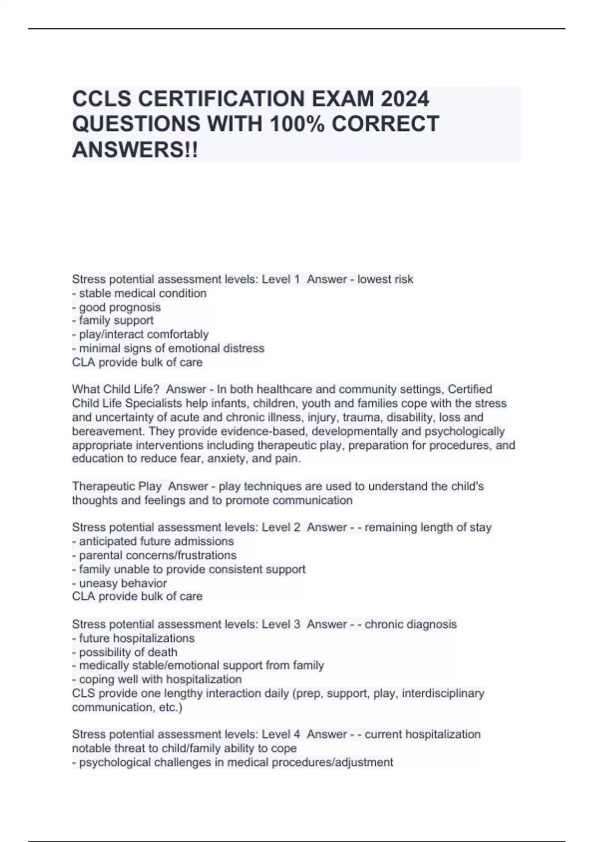 CCLS CERTIFICATION EXAM 2024 QUESTIONS WITH 100% CORRECT ANSWERS!!