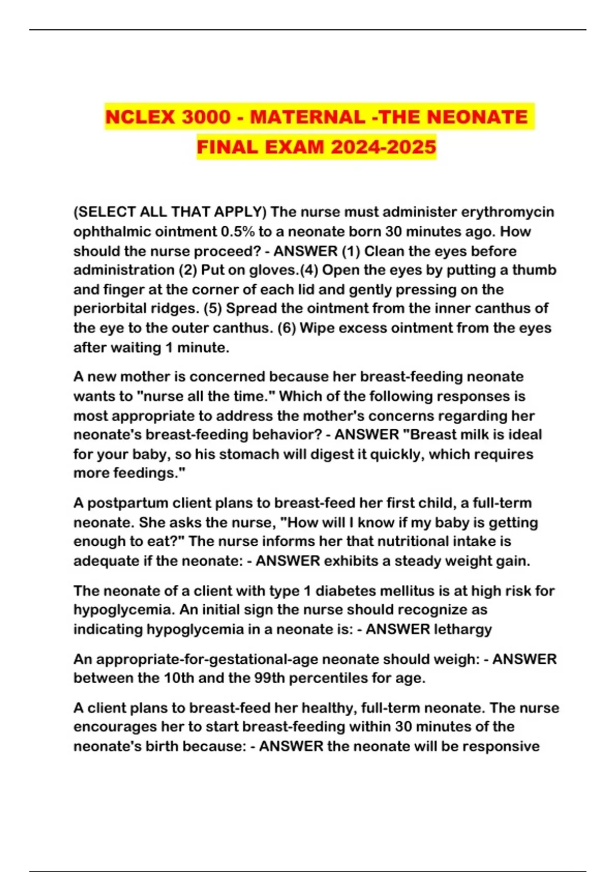 NCLEX 3000 - MATERNAL -THE NEONATE FINAL EXAM ...