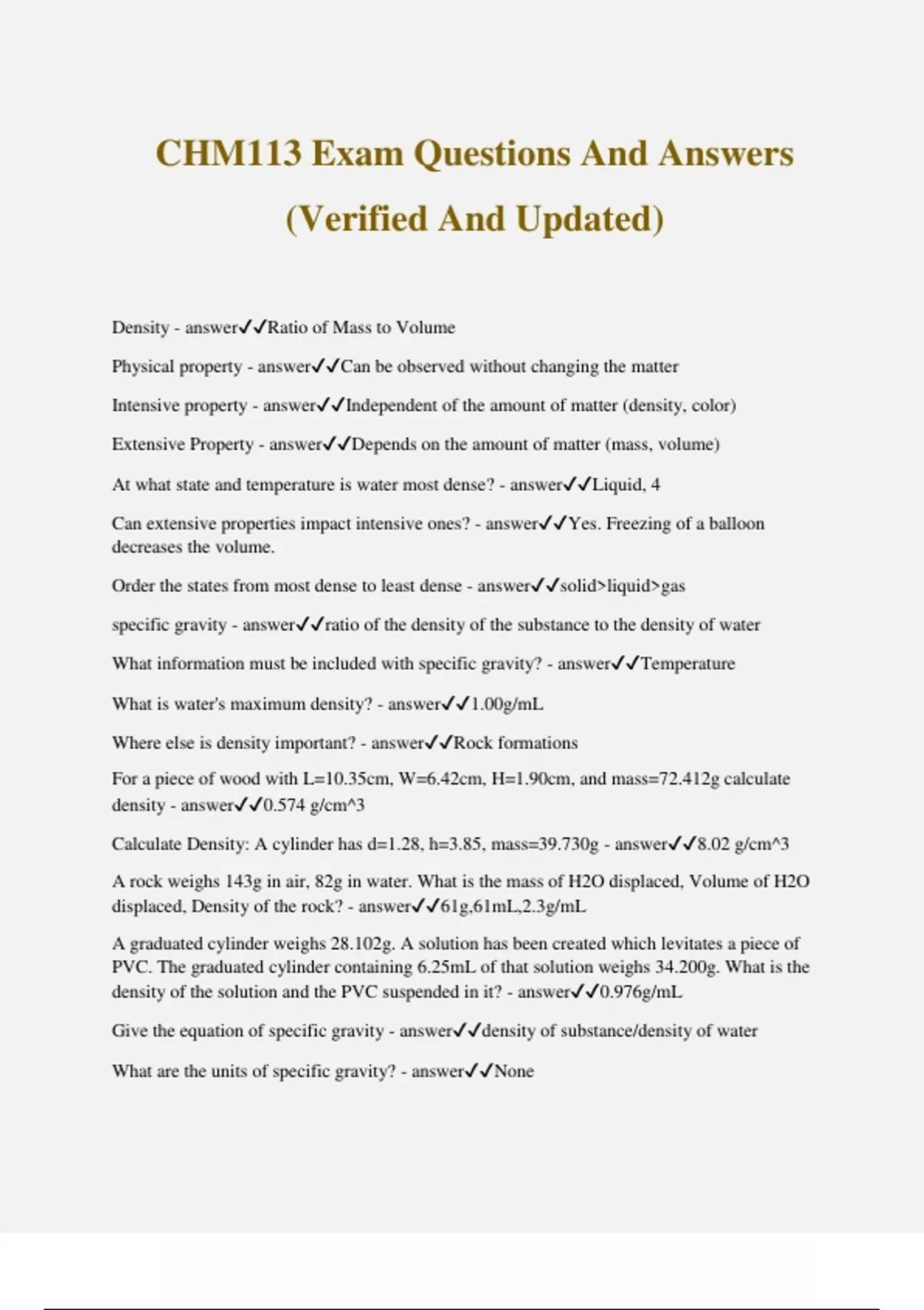 CHM113 Exam Questions And Answers (Verified And Updated)