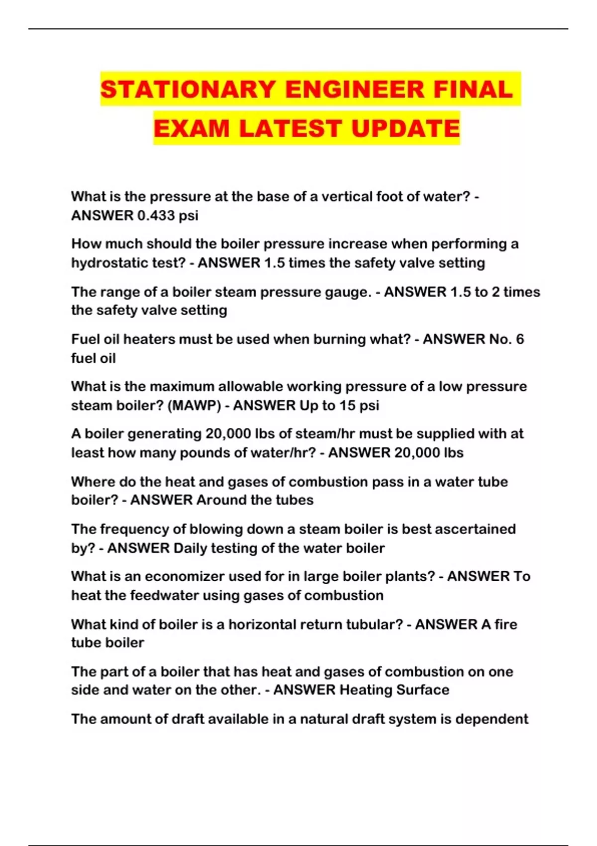 STATIONARY ENGINEER FINAL EXAM LATEST UPDATE...
