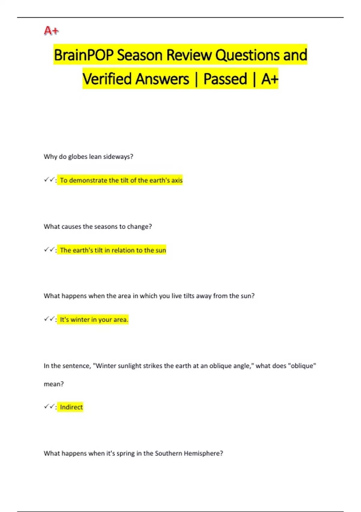 BrainPOP Season Review Questions and Verified Answers | Passed | A+