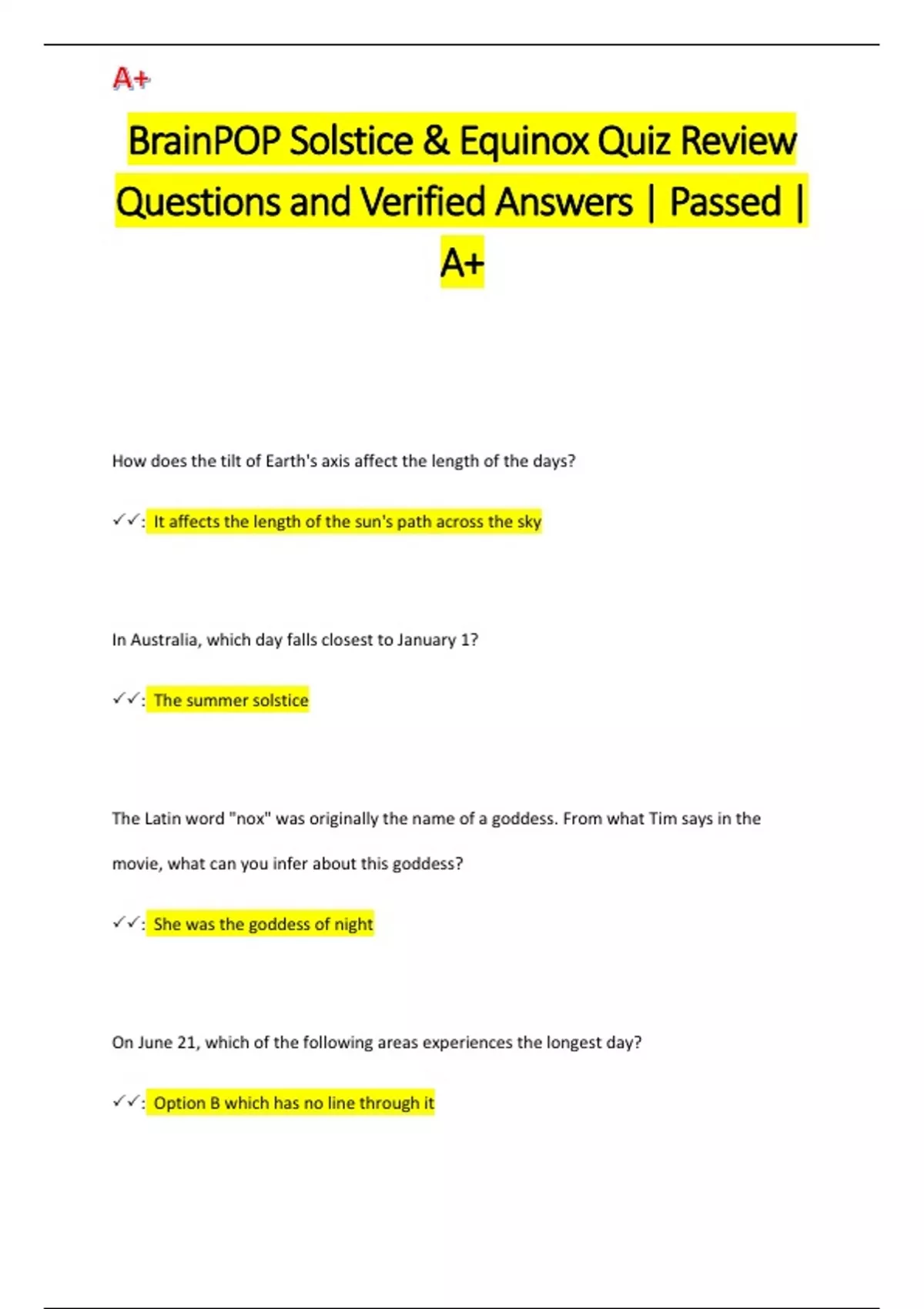 BrainPOP Solstice & Equinox Quiz Review Questions and Verified Answers | Passed | A+