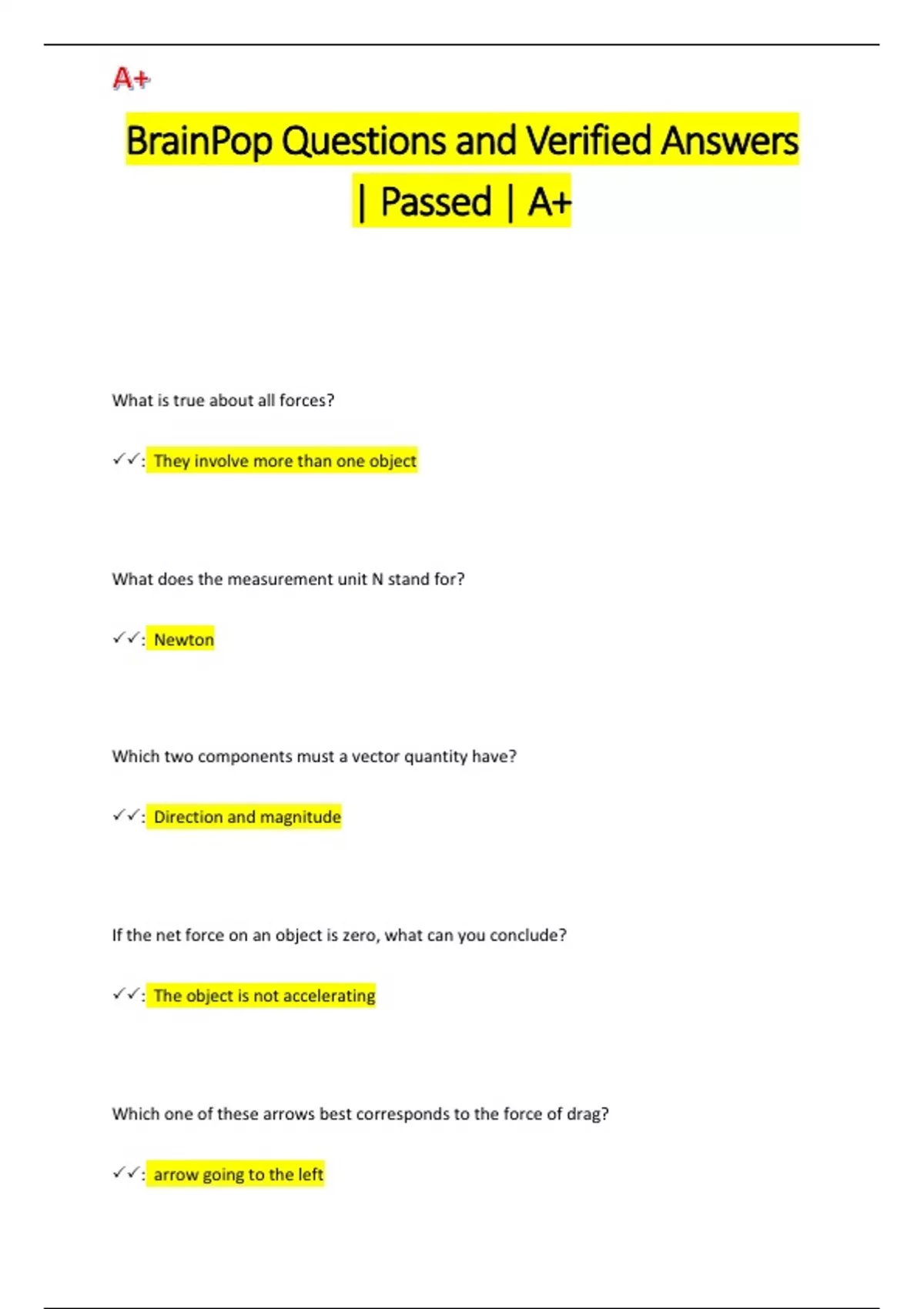BrainPop Questions and Verified Answers | Passed | A+