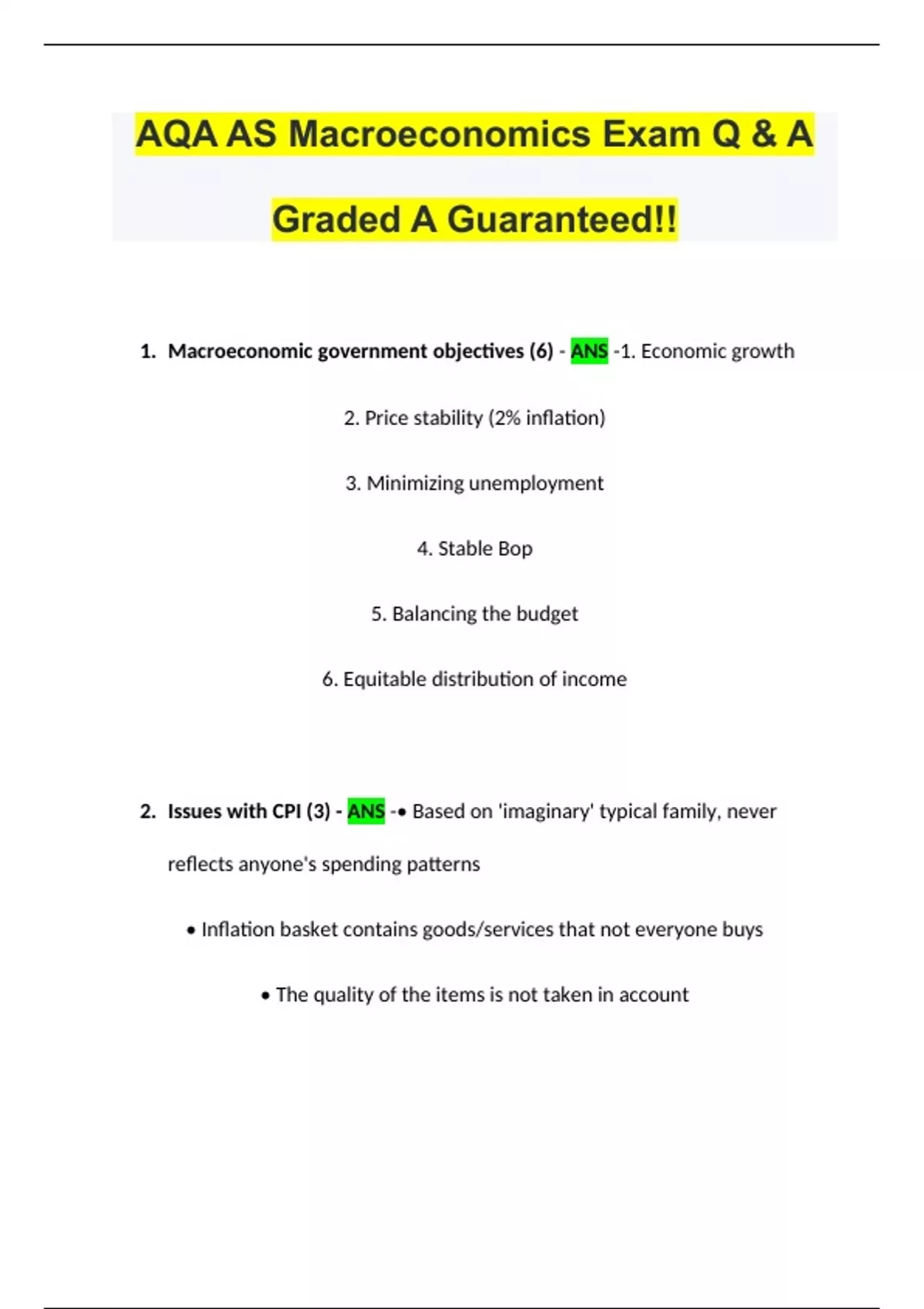 AQA AS Macroeconomics Exam Q & A Graded A Guaranteed!!