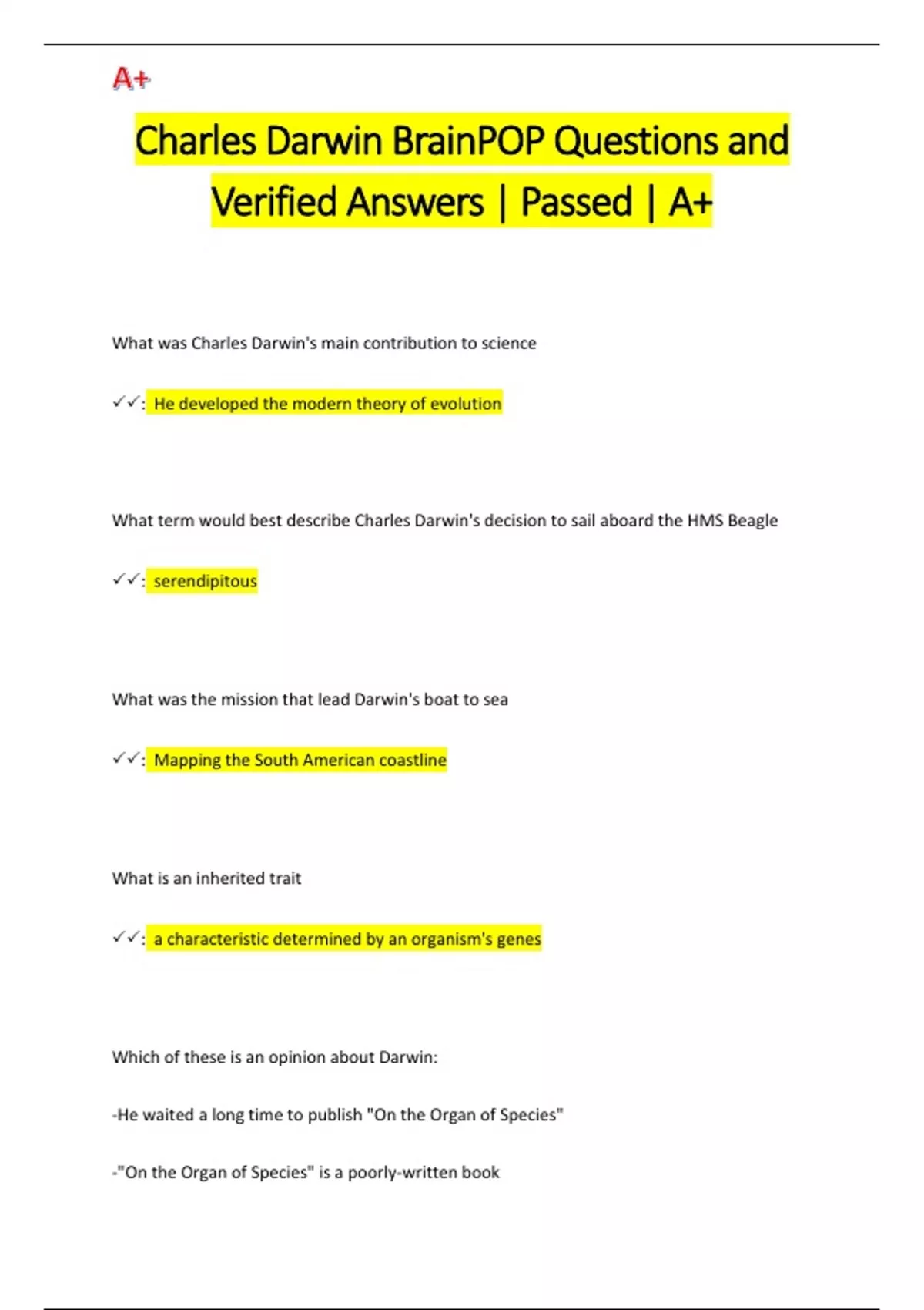 Charles Darwin BrainPOP Questions and Verified Answers | Passed | A+