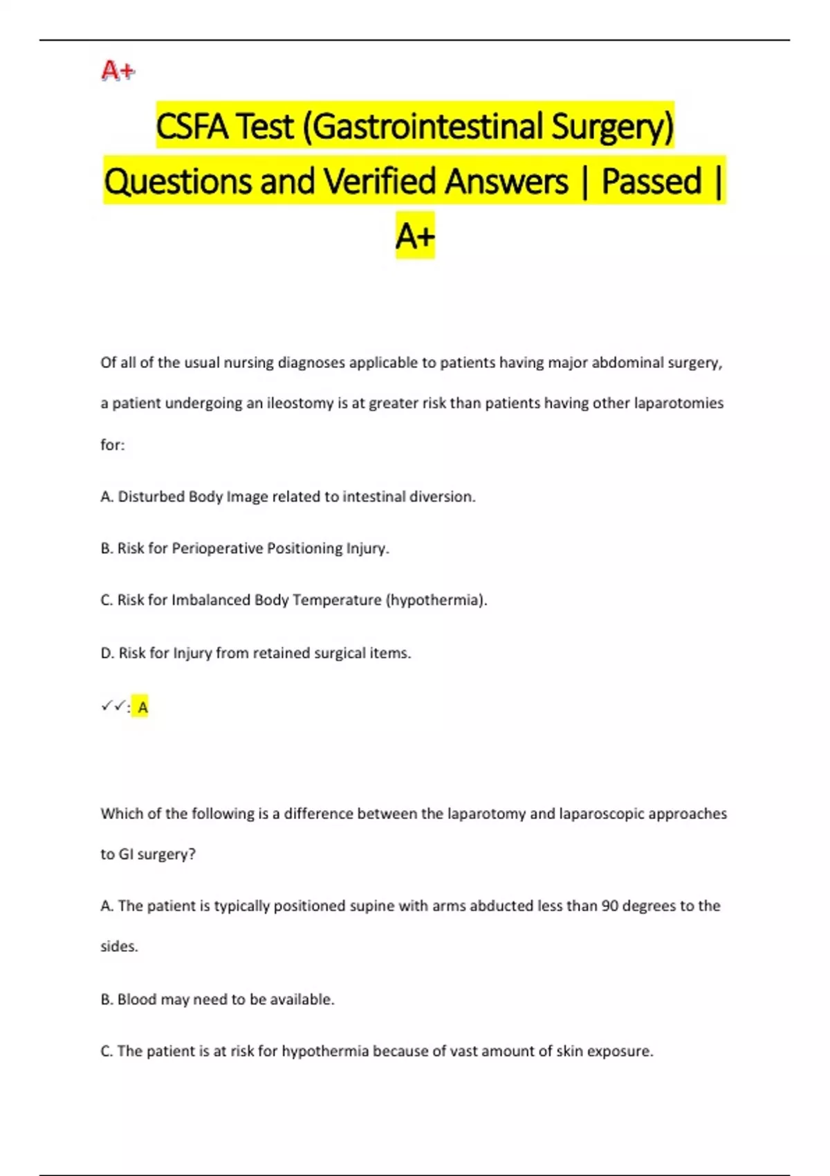 CSFA Test (Gastrointestinal Surgery) Questions and Verified Answers | Passed | A+