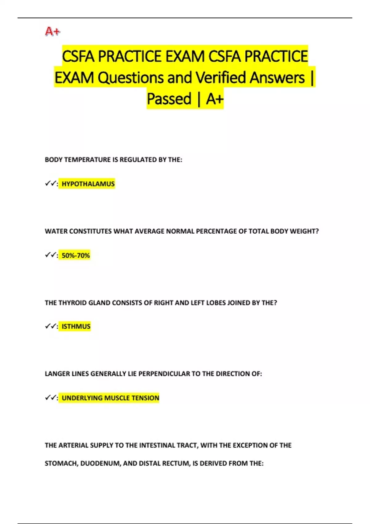 CSFA PRACTICE EXAM CSFA PRACTICE EXAM Questions and Verified Answers | Passed | A+