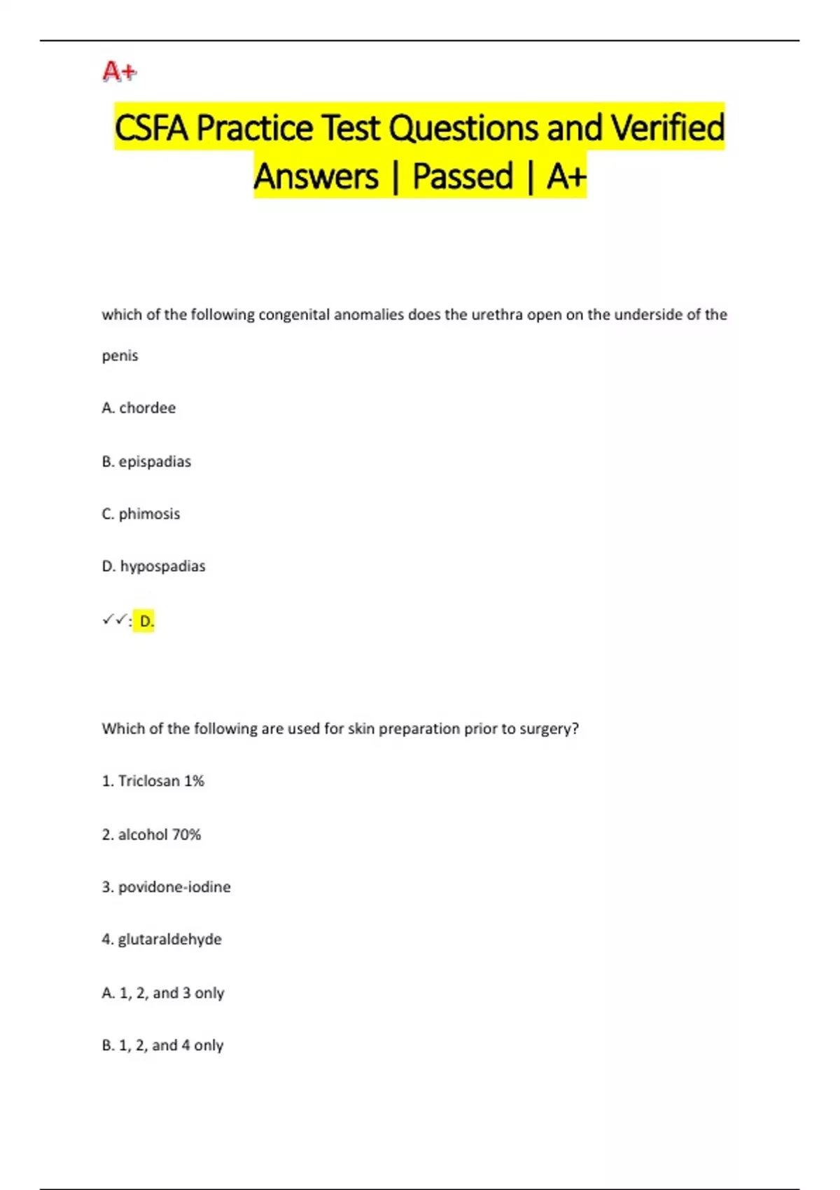 CSFA Practice Test Questions and Verified Answers | Passed | A+