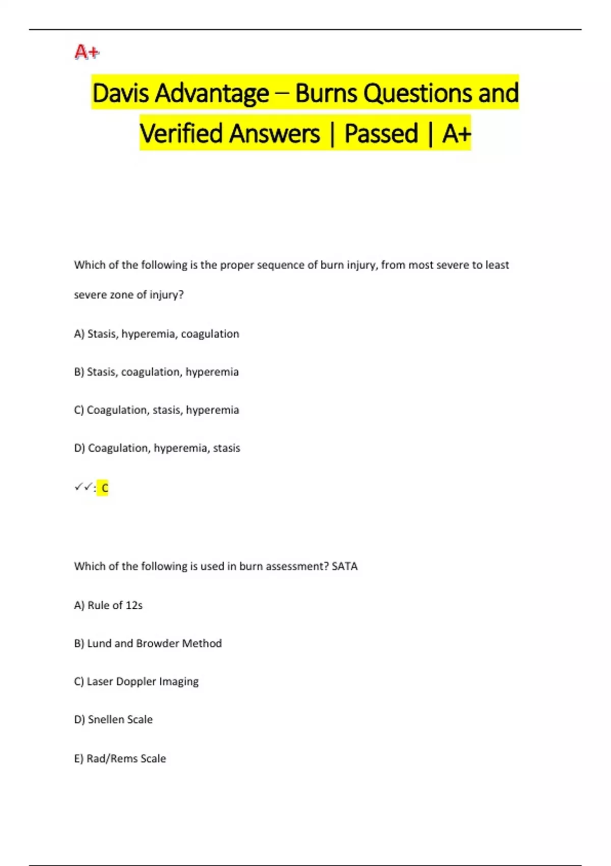 Davis Advantage – Burns Questions and Verified Answers | Passed | A+Davis Advantage – Burns Questions and Verified Answers | Passed | A+
