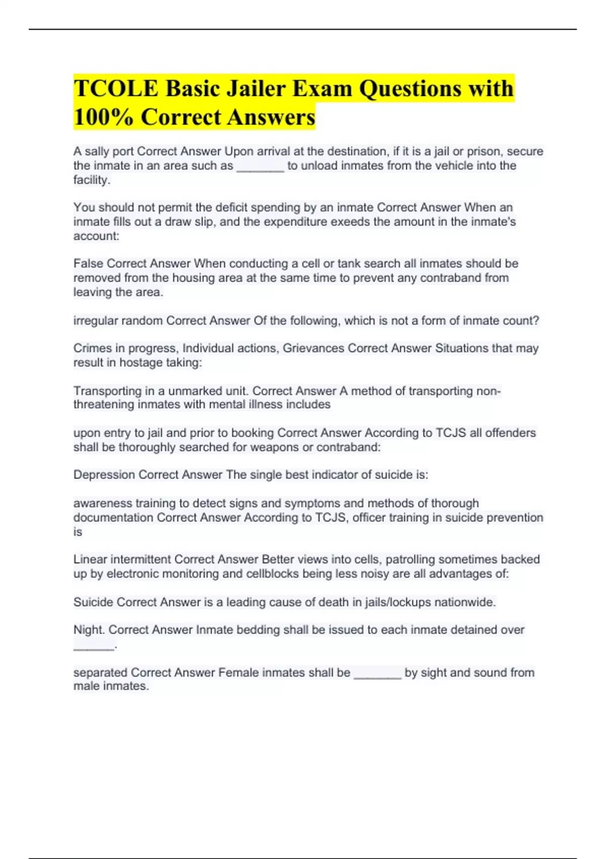 TCOLE Basic Jailer Exam Questions with 100% Correct Answers