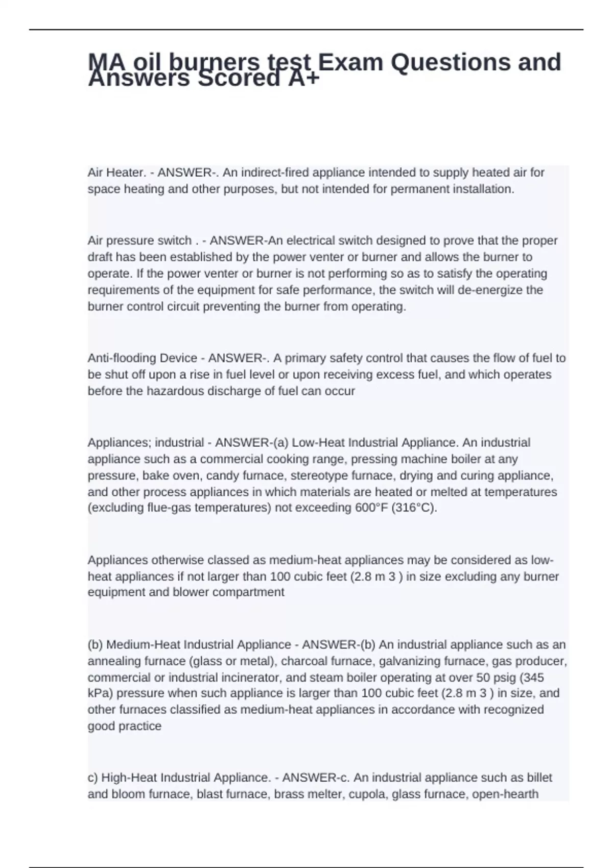 MA oil burners test Exam Questions and Answers Scored A+
