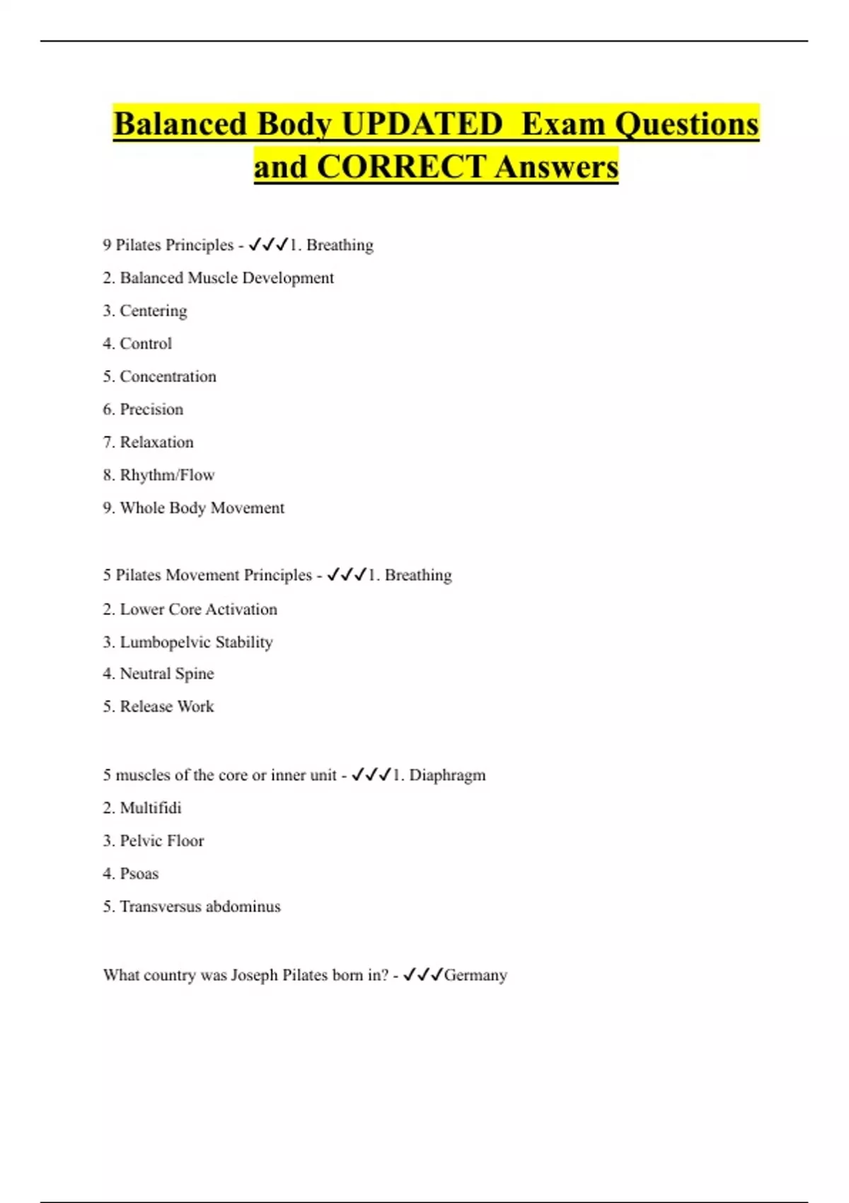 Balanced Body UPDATED Exam Questions and CORRECT Answers