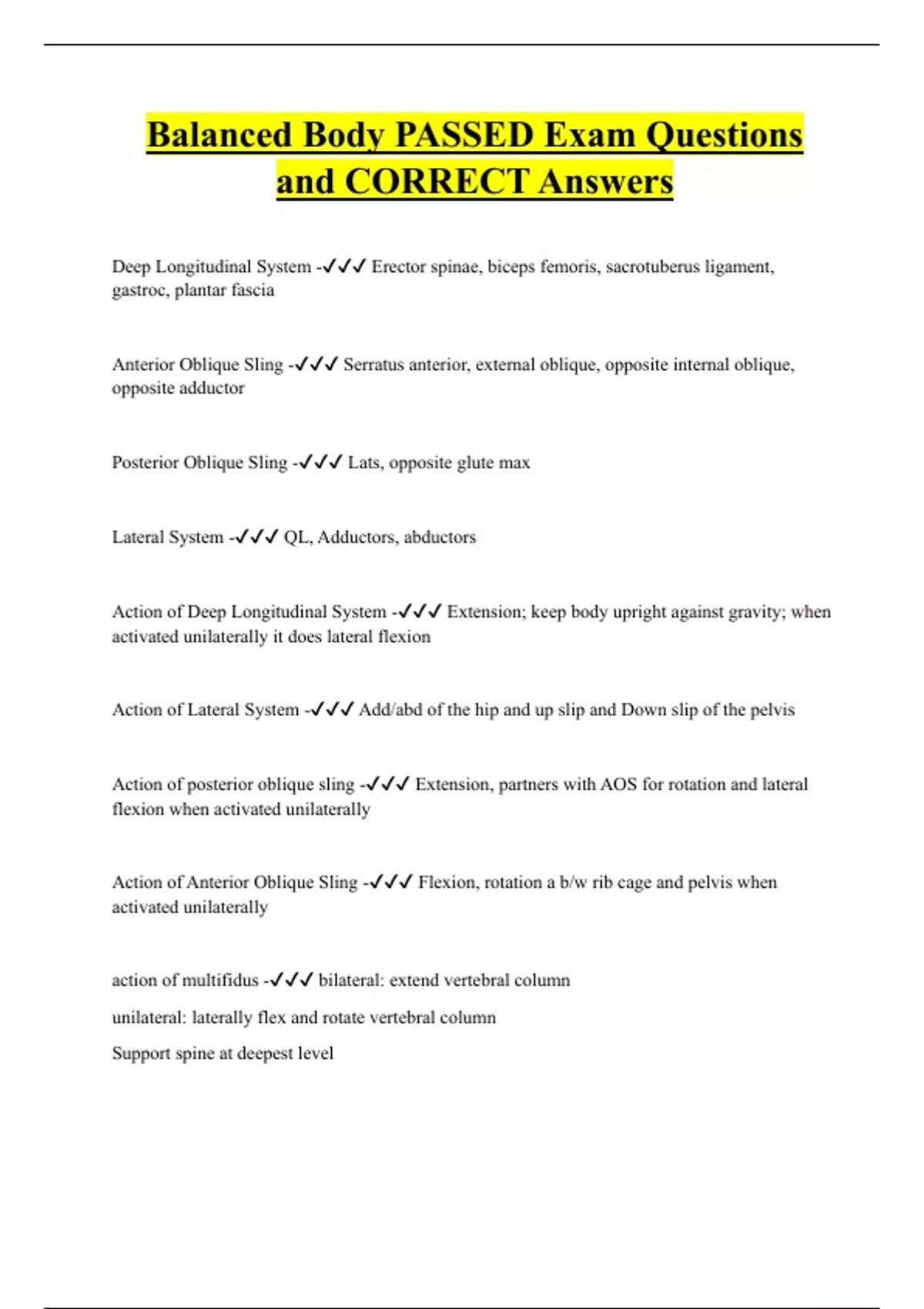 Balanced Body PASSED Exam Questions and CORRECT Answers