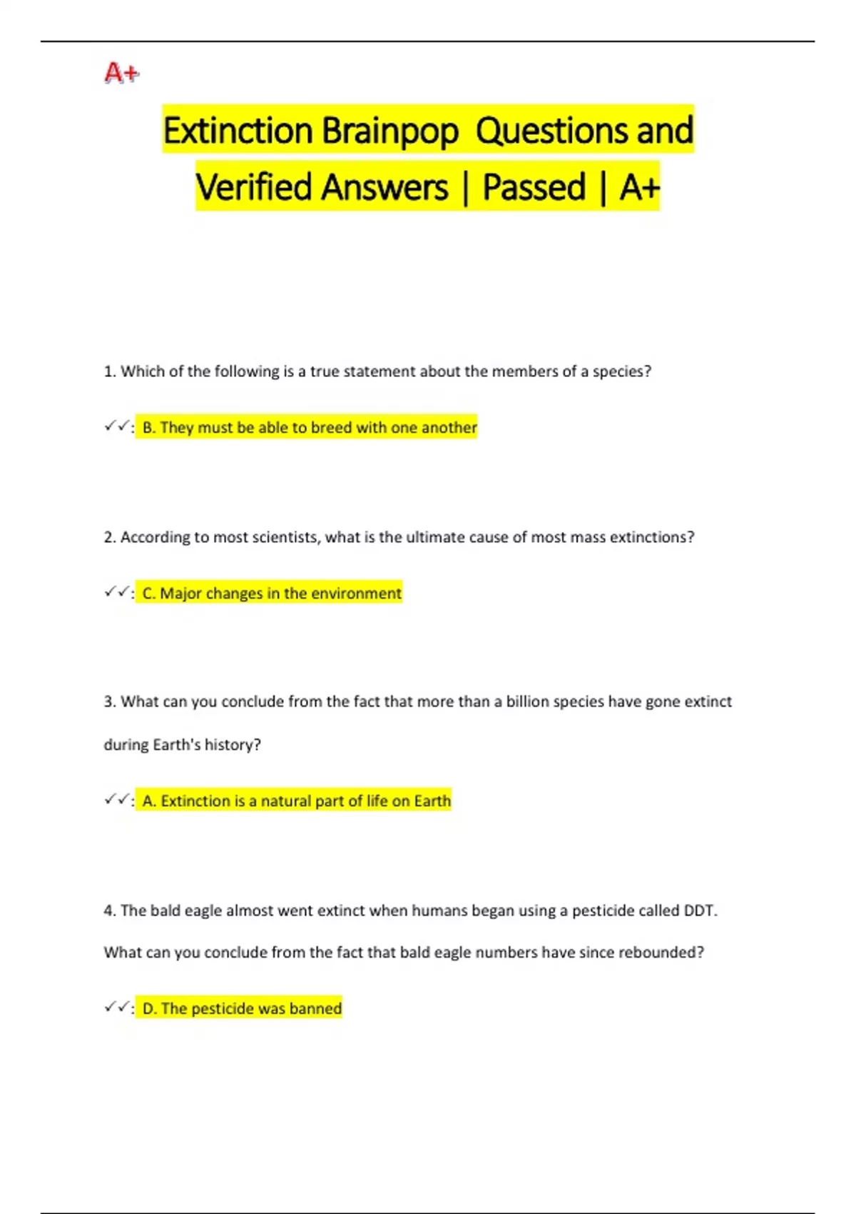Extinction Brainpop Questions and Verified Answers | Passed | A+