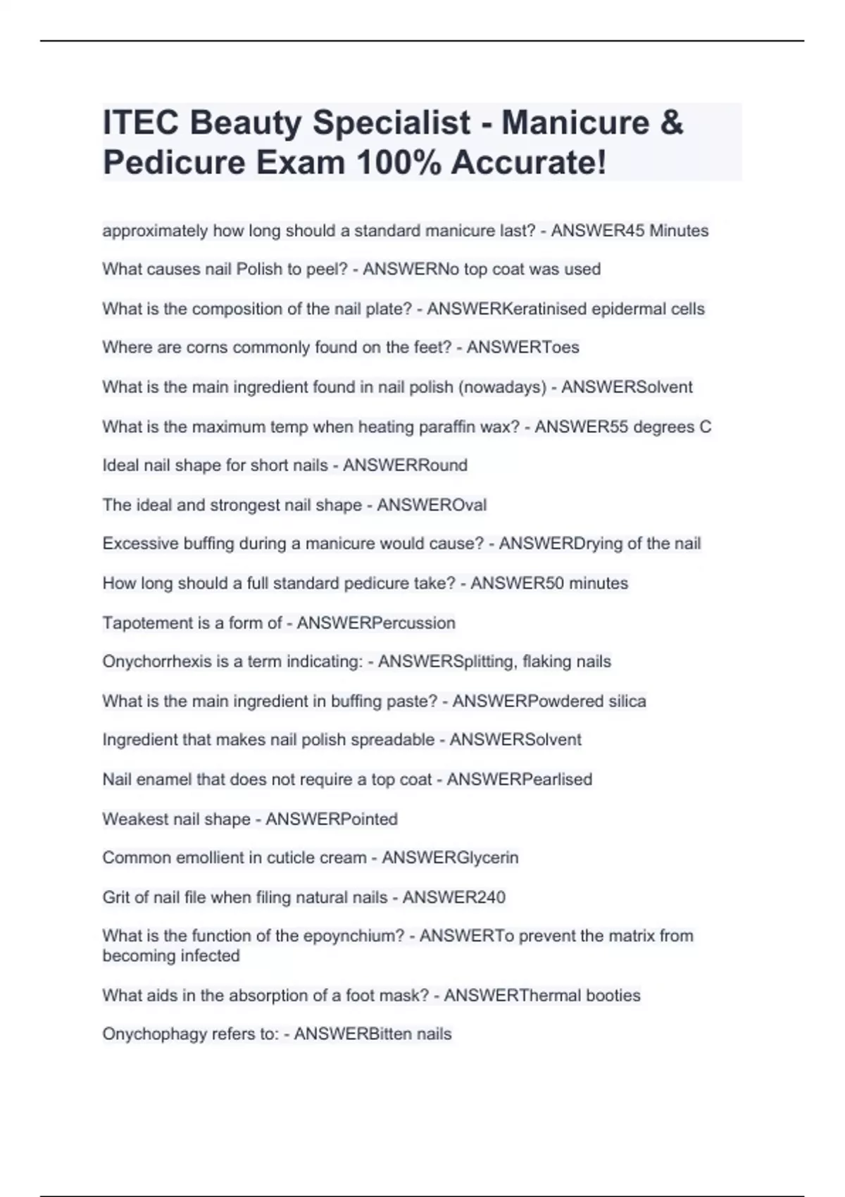 ITEC Beauty Specialist - Manicure & Pedicure Exam 100% Accurate!