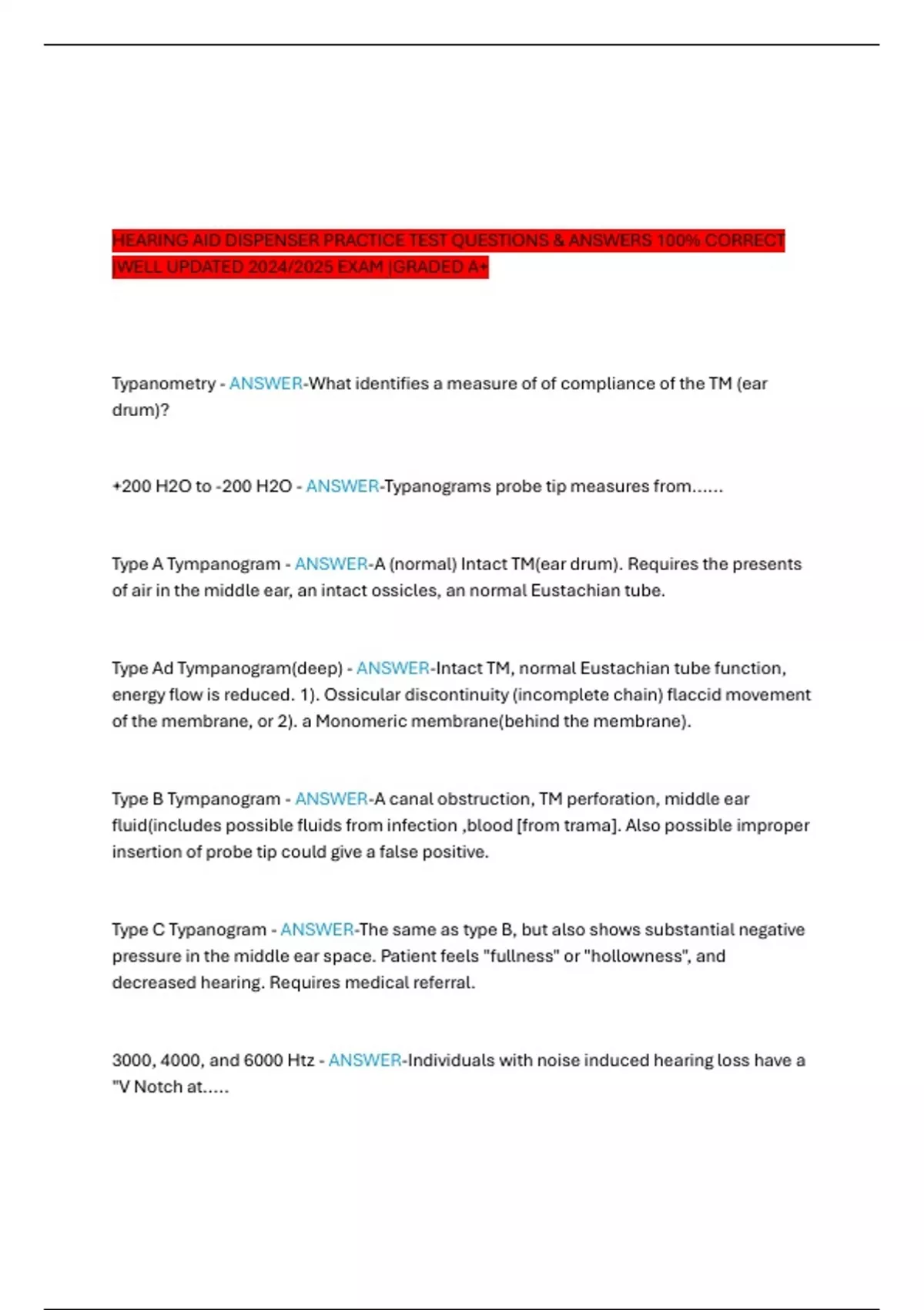 HEARING AID DISPENSER PRACTICE TEST QUESTIONS.