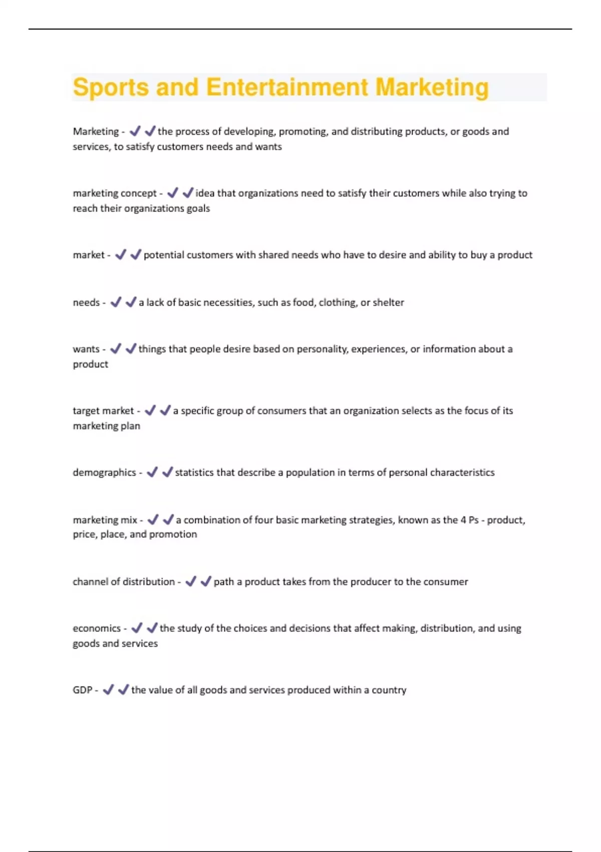 Sports and Entertainment Marketing Questions and Answers with complete solution