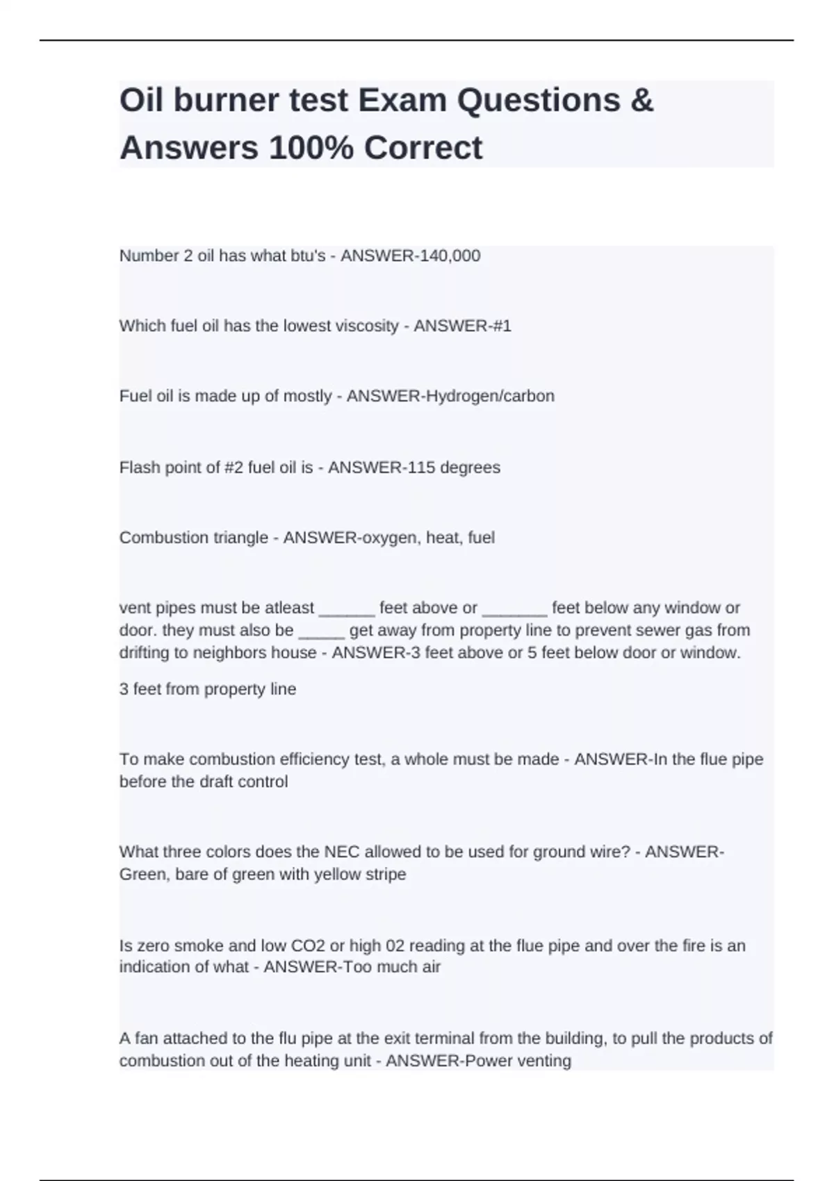 oil burner test exam questions answers stuvia