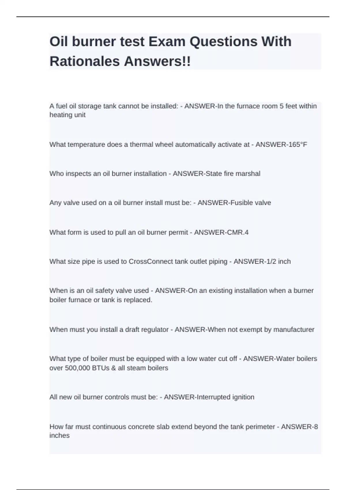 Oil burner test Exam Questions With Rationales Answers!!