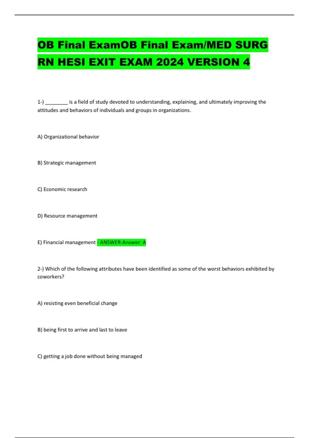 OB Final ExamOB Final Exam/MED SURG RN HESI EXIT EXAM 2024 VERSION