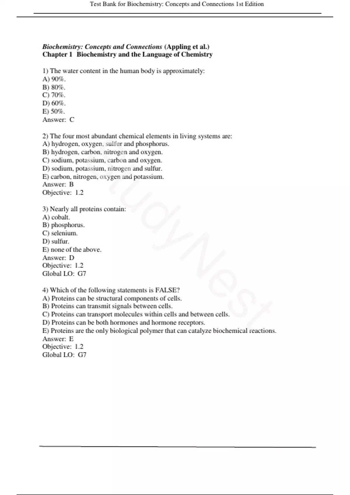 Test Bank for Biochemistry: Concepts and Connections 1st Edition by Dean R. Appling