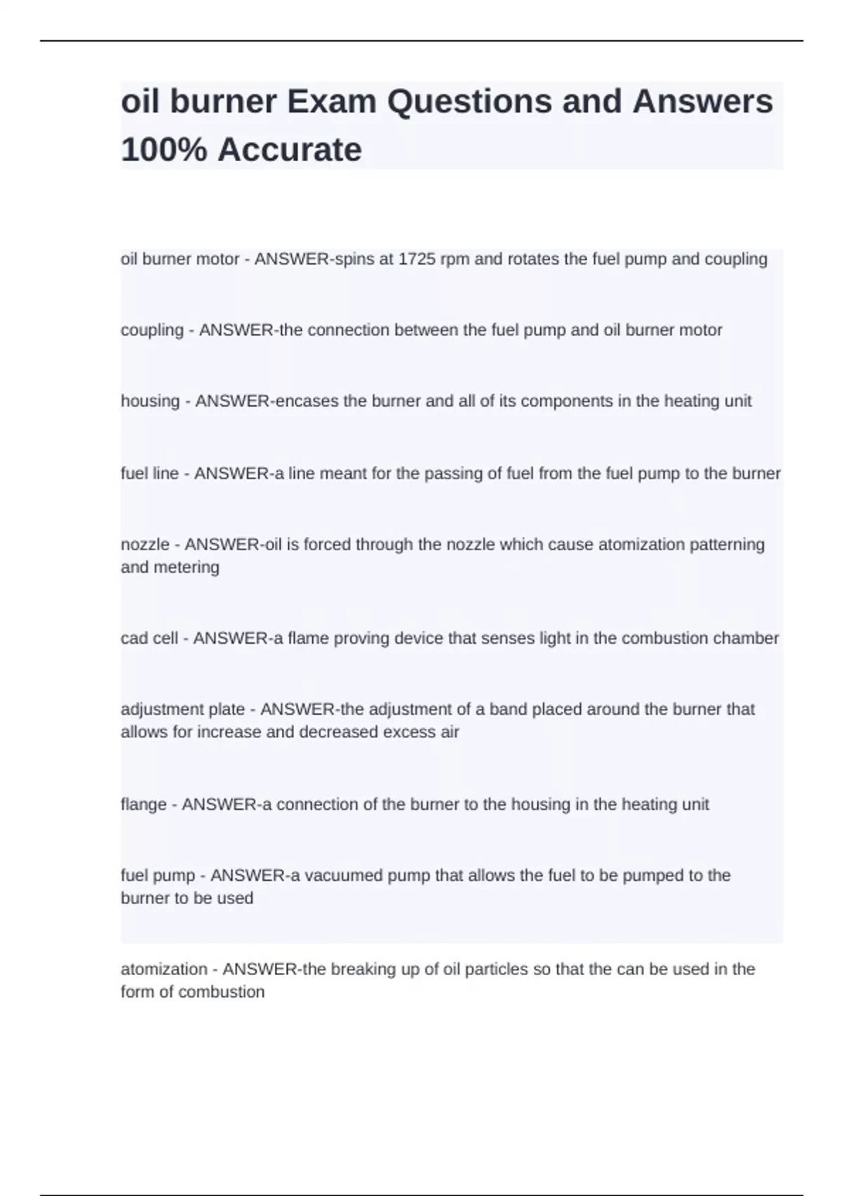 oil burner exam questions and answers stuvia