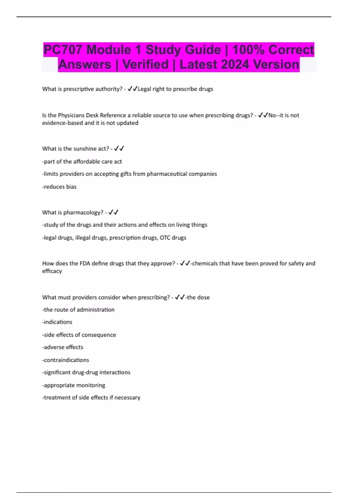 PC707 Module 1 Study Guide | 100% Correct Answers | Verified | Latest 2024 Version