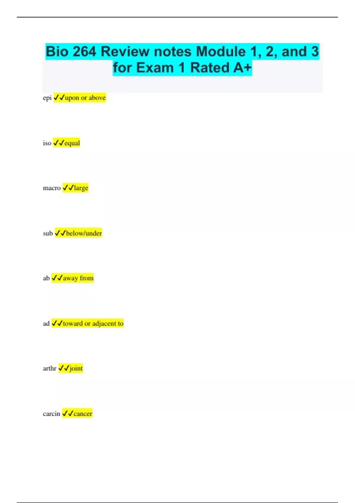Bio 264 Review notes Module 1, 2, and 3 for Exam 1 Rated A+