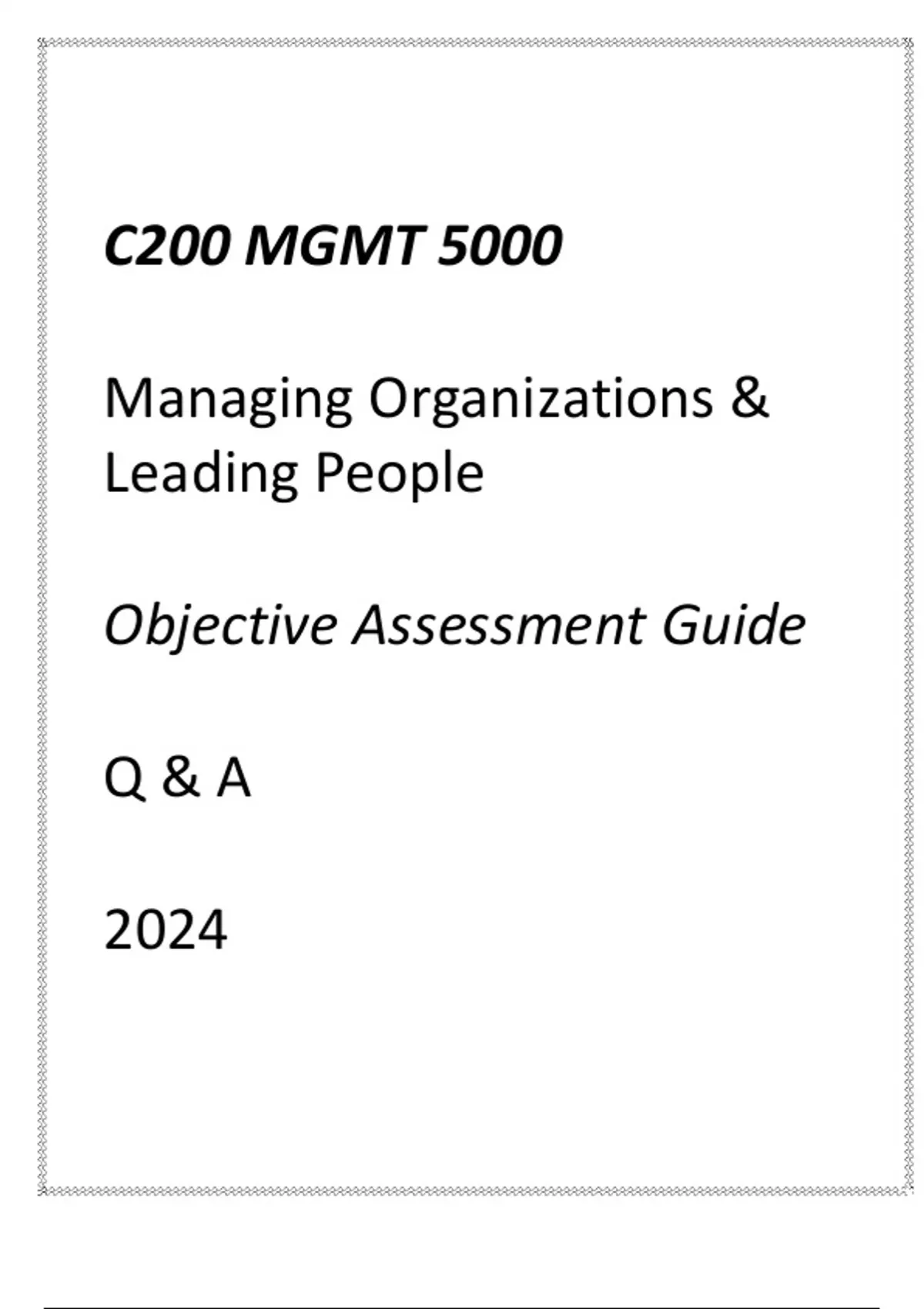 (WGU C200) MGMT 5000 Managing Organizations & Leading People Objective Assessment Guide Q & A