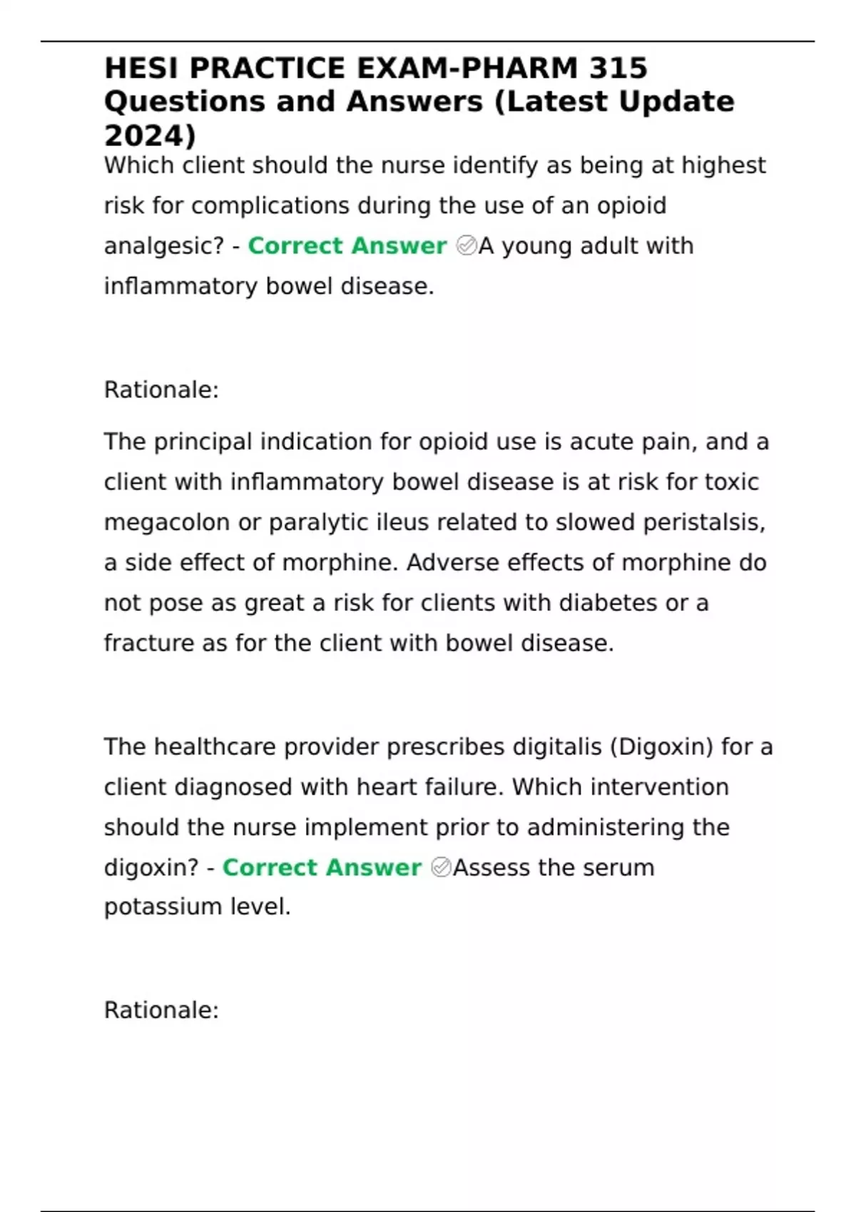 HESI PRACTICE EXAM-PHARM 315 Questions and Answers (Latest Update 2024)