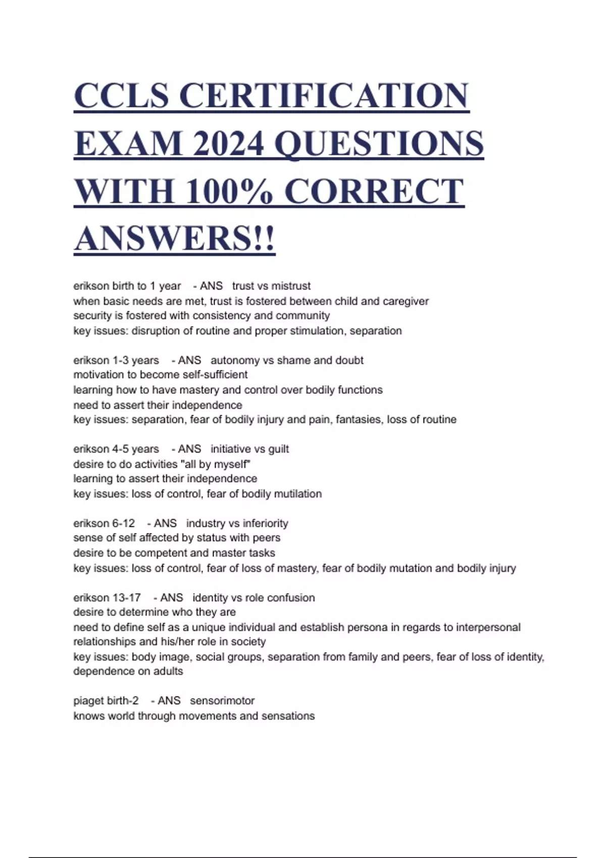 CCLS CERTIFICATION EXAM 2024 QUESTIONS WITH 100% CORRECT ANSWERS!!