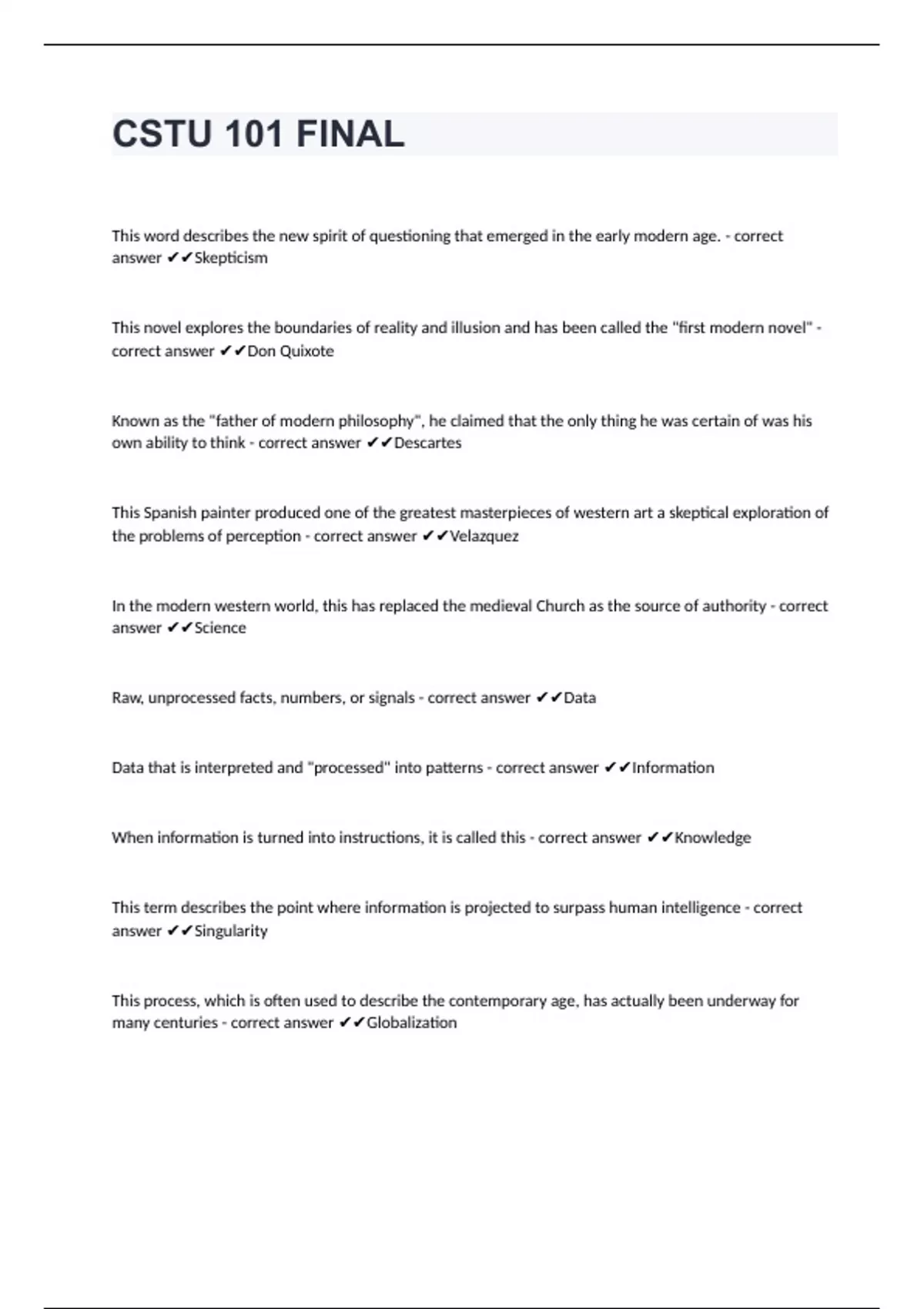 CSTU 101 FINAL EXAM correctly answered