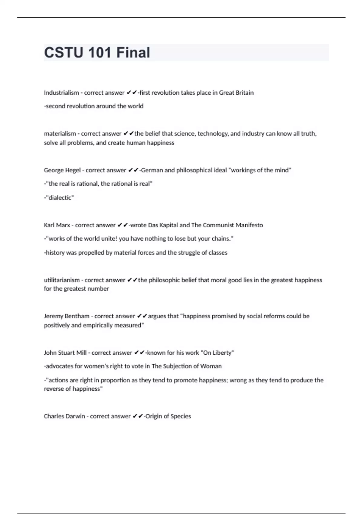CSTU 101 Final Exam with correct answers 100% correct