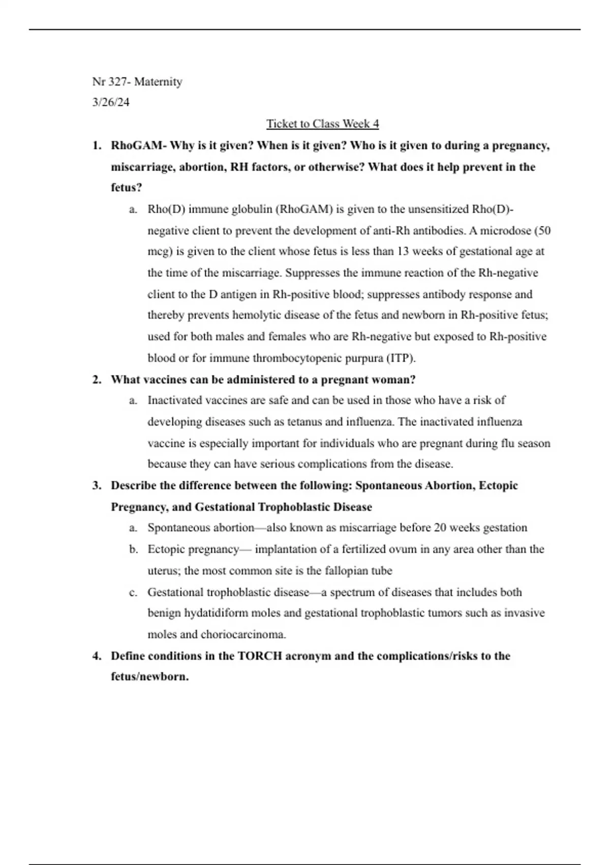 Summary of 2 pages for the course NR 327 at Chamberlain College Nursing (week 4)
