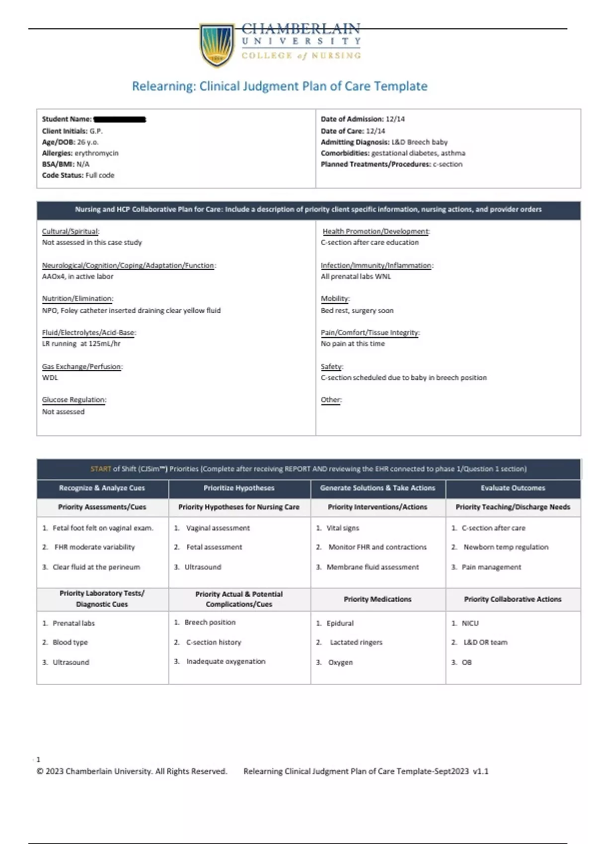 Summary of 3 pages for the course NR 327 at Chamberlain College Nursing (Care plan)