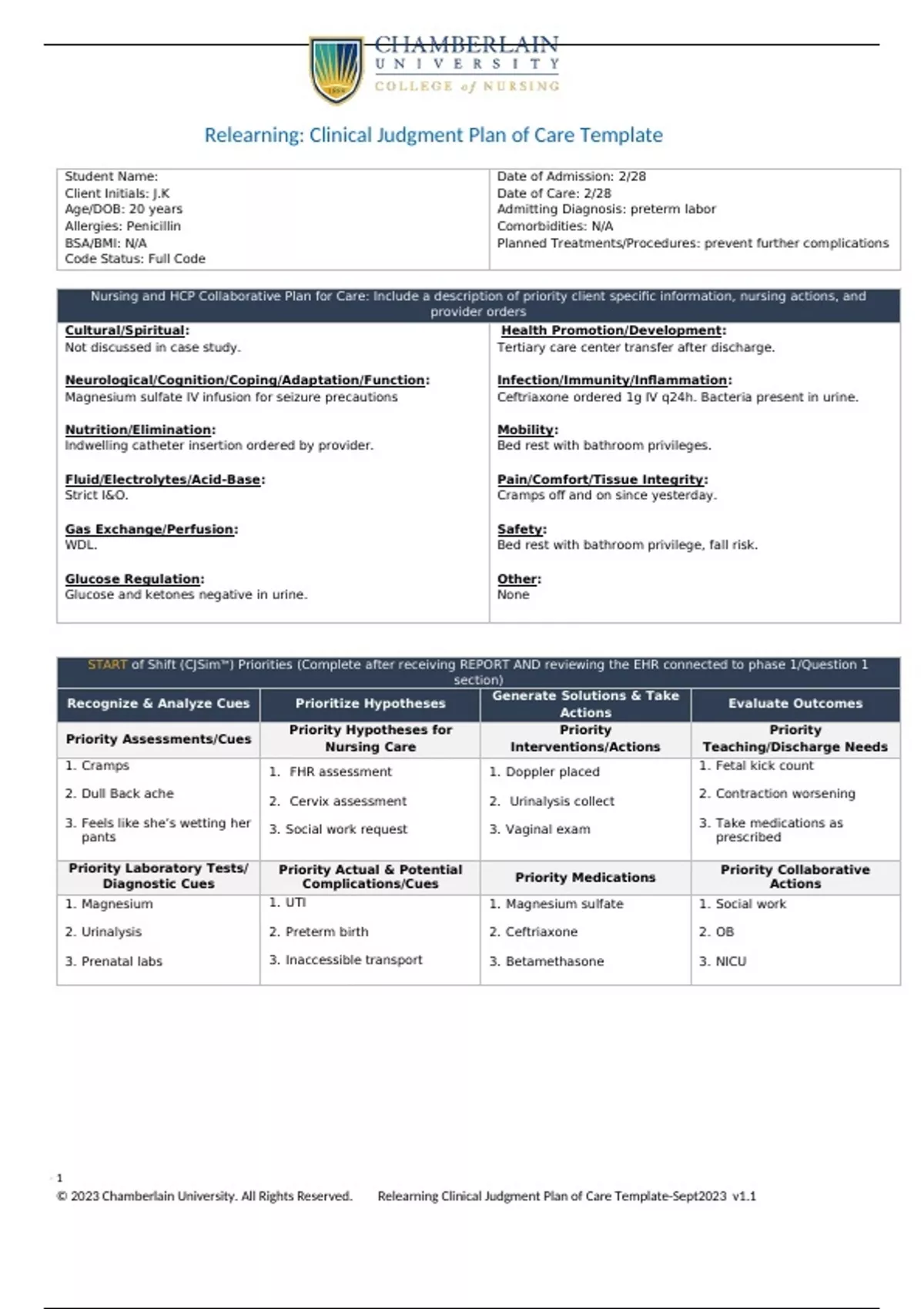 Summary of 4 pages for the course NR 327 at Chamberlain College Nursing (JK Care plan)