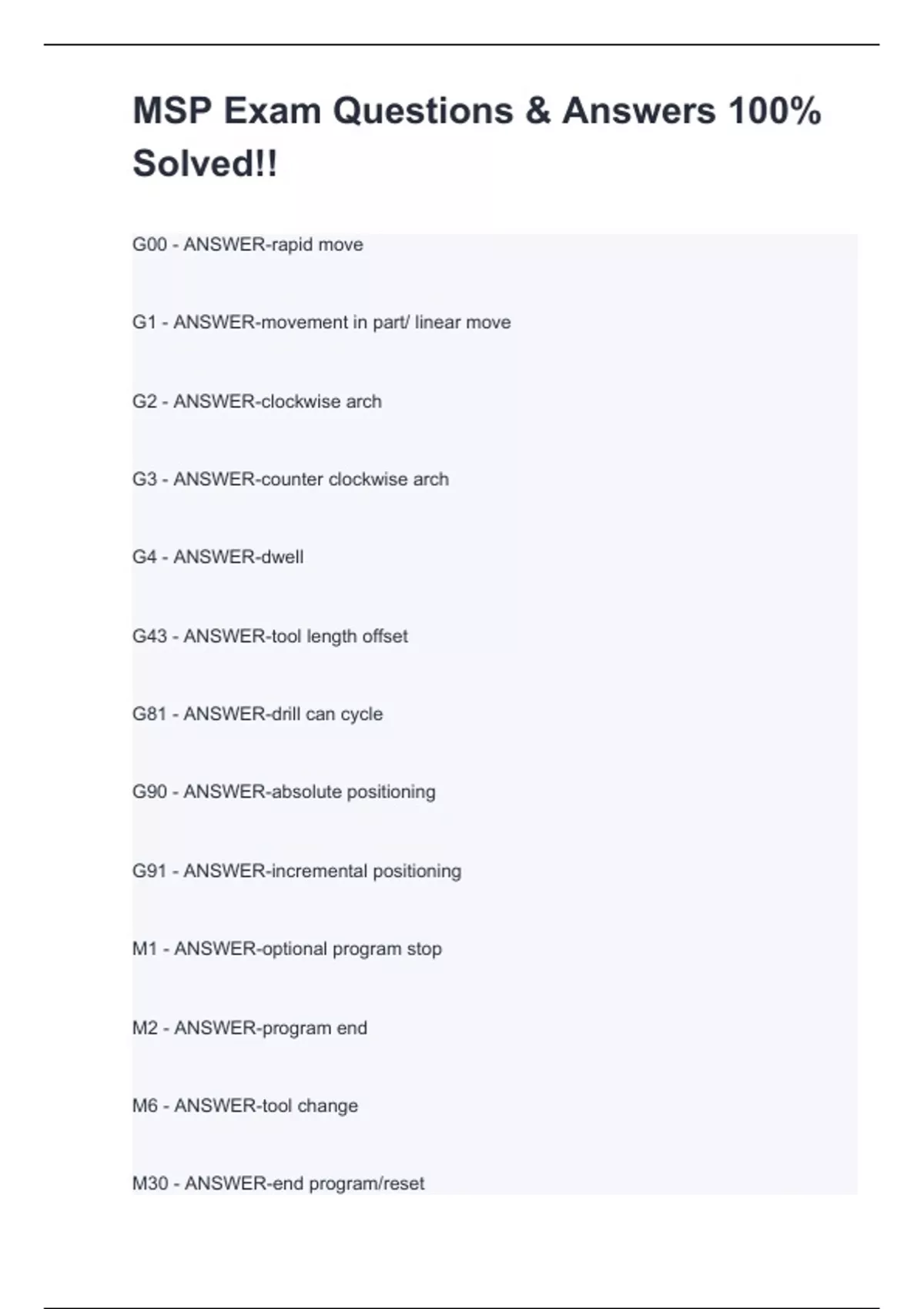 msp exam questions answers stuvia