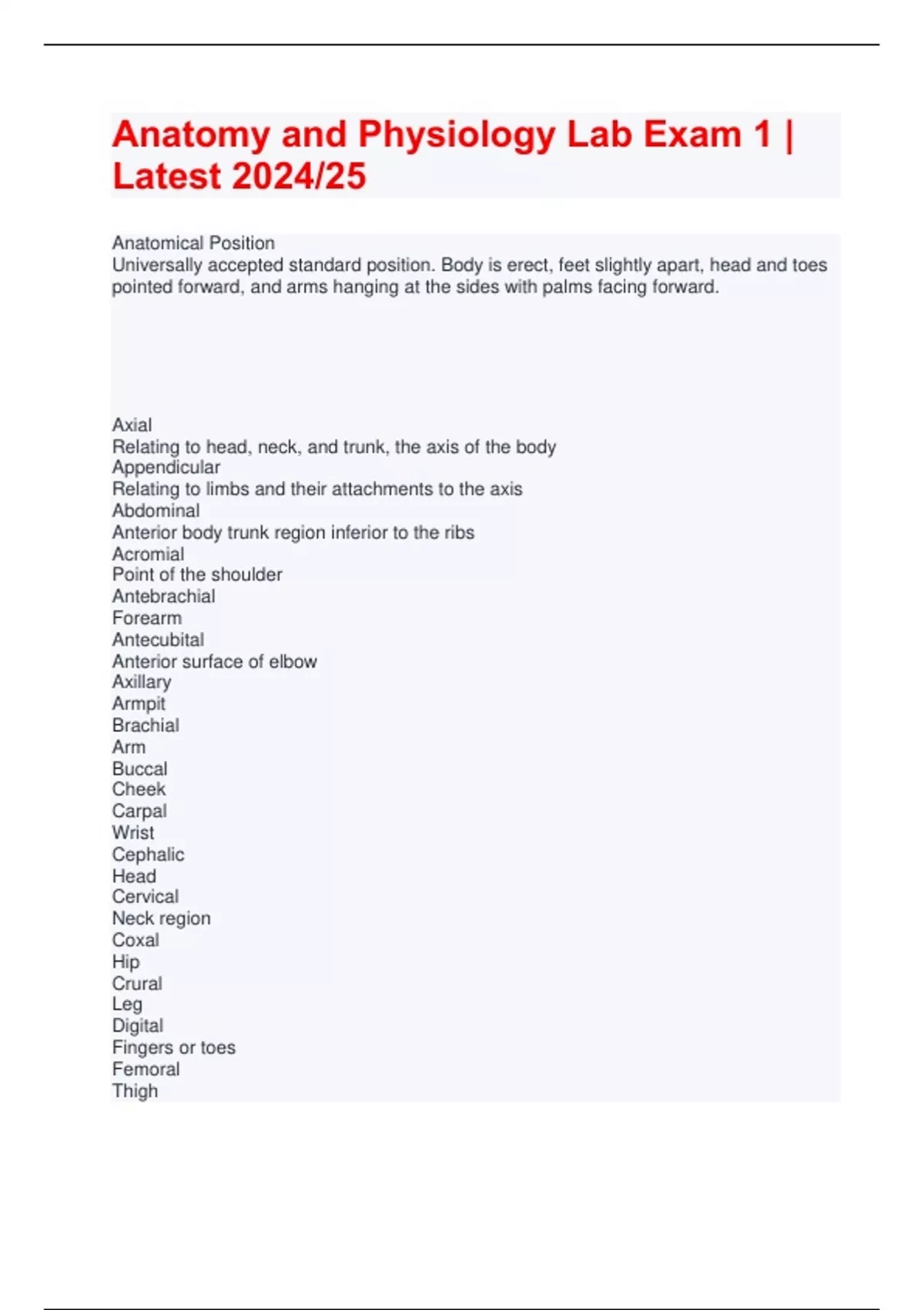 Anatomy and Physiology Lab Exam 1 | Latest 2024/25