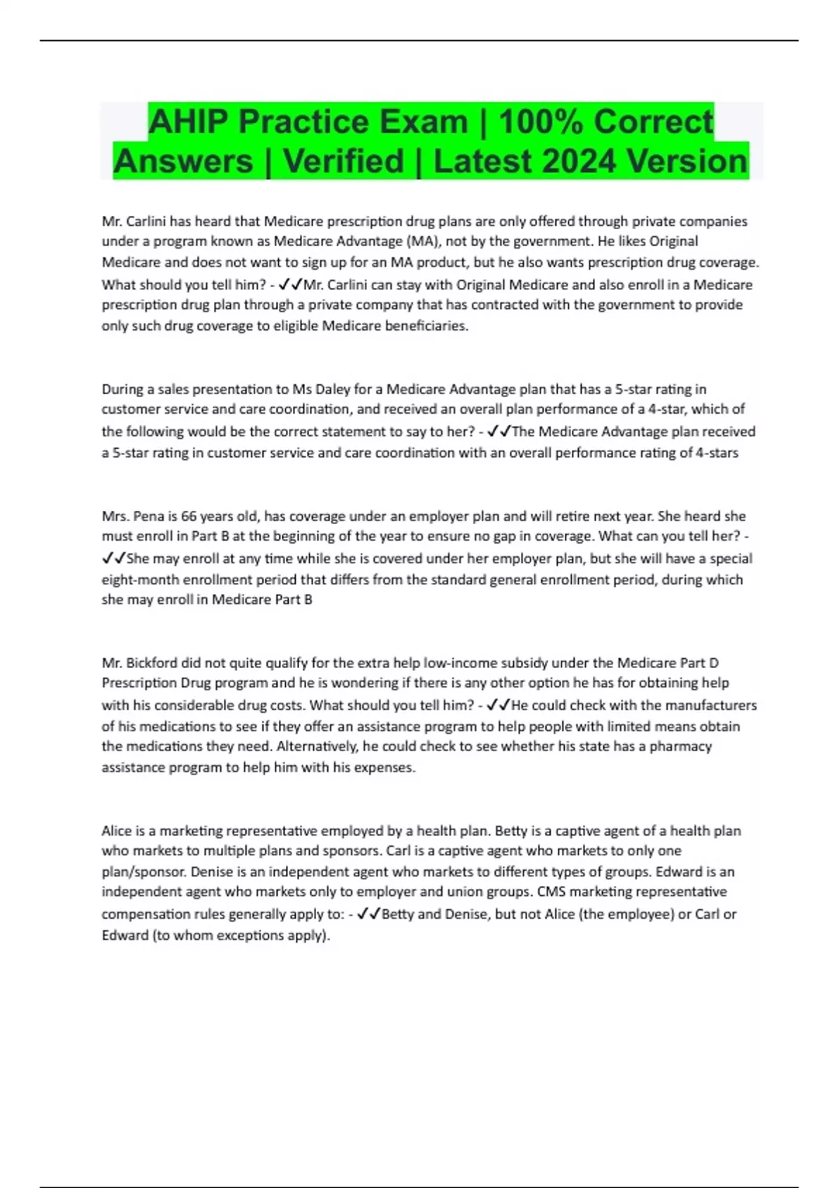the following would be the correct statement to say to her? - ✔✔The Medicare Advantage plan received