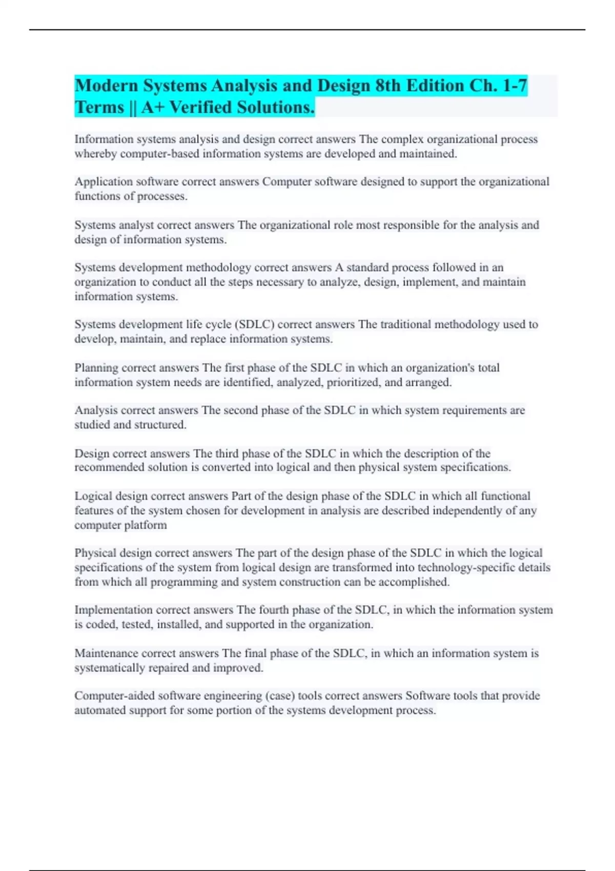 Modern Systems Analysis and Design 8th Edition Ch. 1-7 Terms || A+ Verified Solutions.