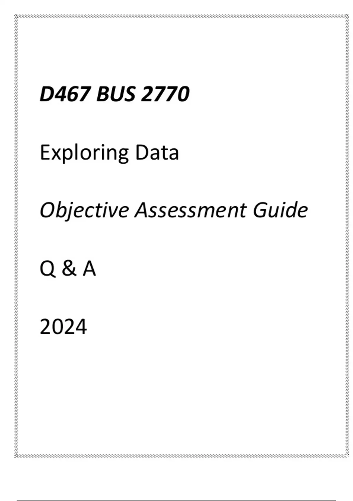 (WGU D467) BUS 2770 Exploring Data Objective Assessment Guide Q & A 2024.p(WGU D467) BUS 2770 Exploring Data Objective Assessment Guide Q & A 2024.p(WGU D467) BUS 2770 Exploring Data Objective Assessment Guide Q & A 2024.p